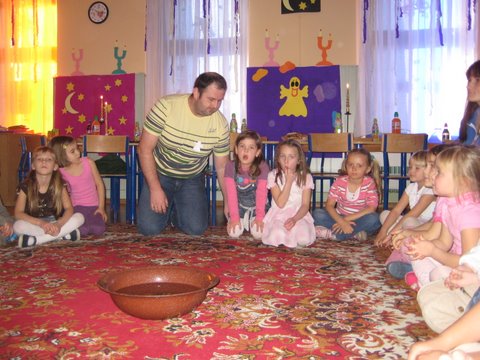 Wigilia św. Andrzeja, czyli popularne Andrzejki od dawien dawna są tradycyjnym wieczorem wróżb. Aby przybliżyć dzieciom owe tradycje 30 listopada 2012 roku w grupie starszej i młodszej odbyły się Andrzejki, na które zostali zaproszeni również rodzice. Wprowadzeniem w magiczną atmosferę było zapalenie magicznej świecy oraz opowieść o zwyczajach i tradycjach andrzejkowych. Następnie za pomocą różnych rekwizytów, magicznych cyfr, kolorów, wosku przepowiedziana została przyszłość. Dzieci dowiedziały się kim zostaną w przyszłości, jak będzie miała na imię sympatia, kto pierwszy zmieni stan cywilny, co się wydarzy w najbliższej przyszłości itd. Słodki poczęstunek, zabawa przy muzyce, wspólne tańce dopełniły uroczystości. Wróżby i przepowiednie przyniosły wiele radości, śmiechu oraz wspaniałą zabawę. opracowała: Marta Grabowska