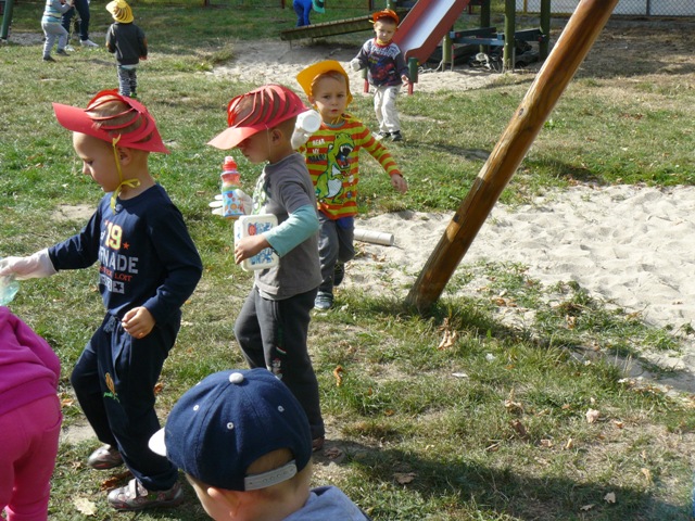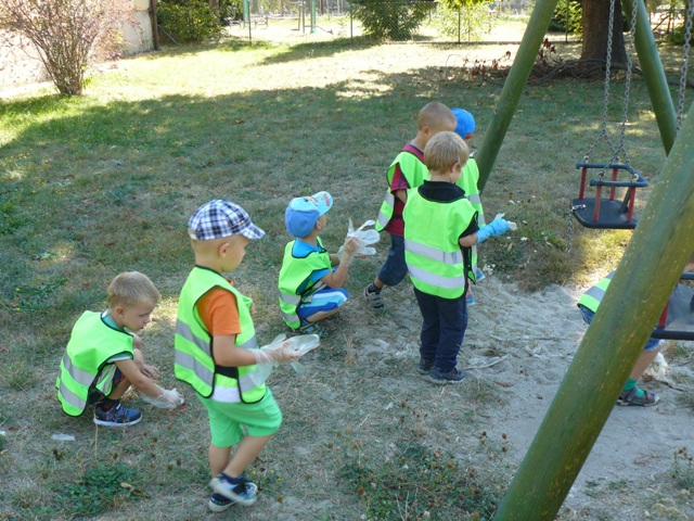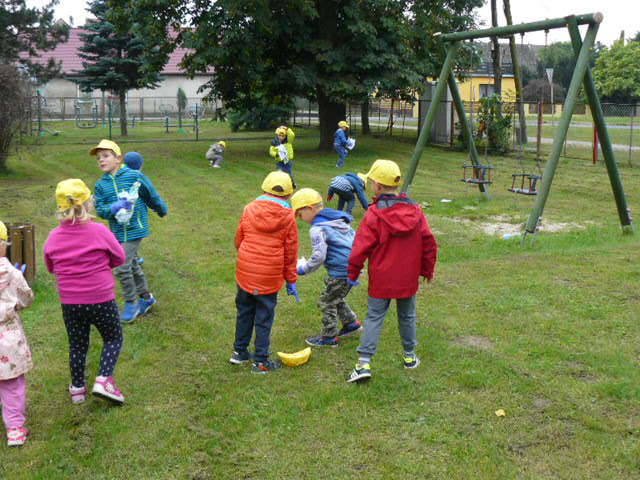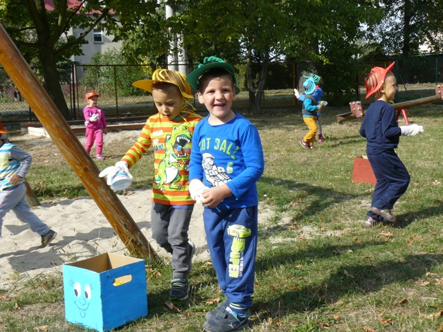 Wrzesień jest tym miesiącem, w którym w całej Polsce odbywa się Ogólnopolska Akcja Sprzątania Świata. W tym roku również nasze przedszkolaki zaopatrzone w rękawice i worki zaangażowały się w tę akcję. Dzieci pomagały w sprzątaniu ogrodu przedszkolnego. Dzięki zaangażowaniu przedszkolaków na placu zabaw zrobiło się czysto i przyjemnie.