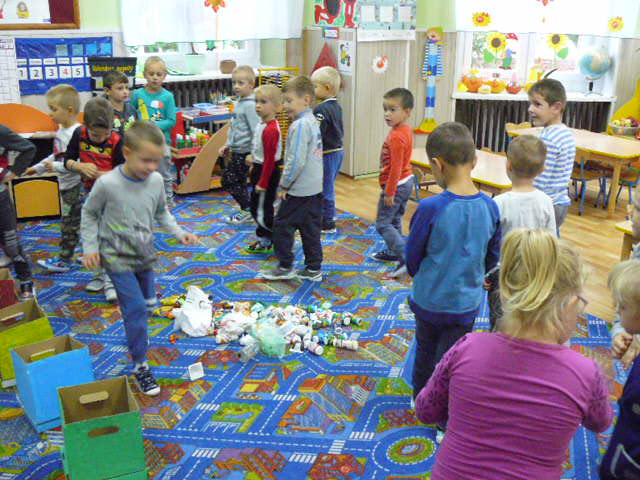Tego dnia w przedszkolu zostały przeprowadzone zajęcia, które zainspirowały dzieci do działań mających na celu dbanie o nasze środowisko. Szczególną uwagę zwrócono na segregowanie odpadów oraz recykling. Przedszkolaki poznały kolory pojemników do których należy wrzucać posortowane odpady. Jednak główną atrakcją tego dnia było sprzątanie „Naszej Ziemi”.Wszystkie dzieci otrzymały rękawiczki i worki na śmieci. Starszaki i maluchy bardzo zaangażowały się w tę akcję i dokładnie wykonały swoje zadanie. Wszystkie zapełnione worki włożyły do kosza. Od dziś będą pamiętały, że należy dbać i szanować naszą przyrodę.