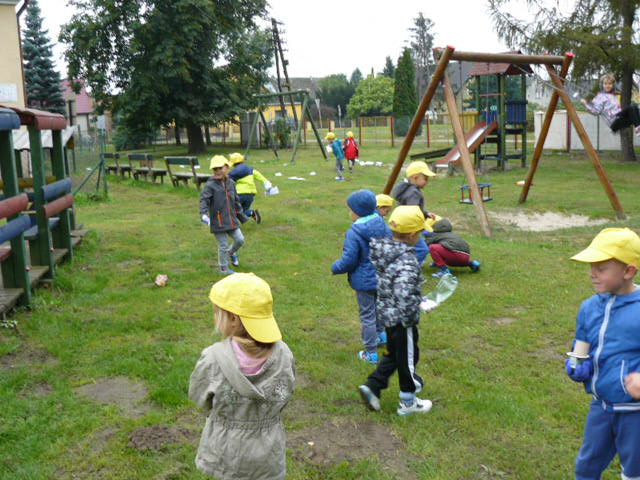 Wrzesień to miesiąc, w którym jak co roku włączamy się w akcję "Sprzątania Świata", która jest dla dzieci atrakcyjną, aktywną formą edukacji ekologicznej. Jest rzeczywistą lekcją ochrony środowiska, dzięki której uczymy się bardziej przyjaznego stosunku do naszej planety. Dnia 22 września 2015r. dzielne i pełne zapału przedszkolaki wyruszyły na wielkie porządkowanie placu zabaw. Wszyscy uczestnicy akcji z wielkim zaangażowaniem przystąpili do zbierania śmieci umieszczając je w odpowiednich pojemnikach. Po skończonej pracy na twarzach dzieci zagościł uśmiech i radość z bardzo dobrze wykonanego zadania.