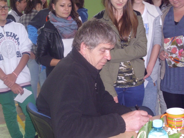 Znany aktor i pieśniarz Lech Dyblik gościł 12 maja w Publicznym Gimnazjum w Olszance. Opowiadał on o swoim życiu pełnym wzlotów i upadków oraz trudnym wychodzeniu z nałogu alkoholizmu. Podkreślał wielką rolę rodziny w życiu każdego człowieka. Aktor sympatię widzów zyskał dzięki wyrazistym kreacjom, głównie drugoplanowym, w takich filmach jak: „Kroll”, „Ogniem i mieczem”, „Wesele”, „Dom zły”, „Drogówka” oraz „Pod mocnym aniołem”. Występuje również w serialach telewizyjnych m.in.: „Pierwsza miłość”, „Świat według Kiepskich”, “Ojciec Mateusz”. Artysta oprócz grania w filmach śpiewa piosenki w szkołach, domach kultury oraz więzieniach. Podczas spotkania w Olszance opowiadał językiem przystępnym o swojej karierze i dokonaniach teatralno-filmowych, ale przede wszystkim poruszył trudny temat uzależnienia i prób radzenia sobie z nim. Mówił o czasach młodości, studiach, przez które "przeszedł jak burza", sukcesach, osiagnięciach, pracy w Teatrze Narodowym. Myślał, że jest panem swojego życia... Skończył na terapii odwykowej po nieudanej próbie samobójczej. Po niej rozpoczął nowe, szczęśliwe życie i chociaż nie jest wolny od nałogu, bo z tą chorobą żyje się do końca, przestał krzywdzić najbliższych, nauczył się gry na gitarze, języka francuskiego i angielskiego. Pogadanka tym bardziej była interesująca i wiarygodna, gdyż aktor odwoływał się przede wszystkim do swojego życia i swoich doświadczeń z alkoholem. Lech Dyblik pokazał na swoim przykładzie ciężką walkę osoby uzależnionej, trudne relacje w rodzinie, stratę szacunku innych ludzi. Uświadamiał jak nałóg niszczy całe życie człowieka.