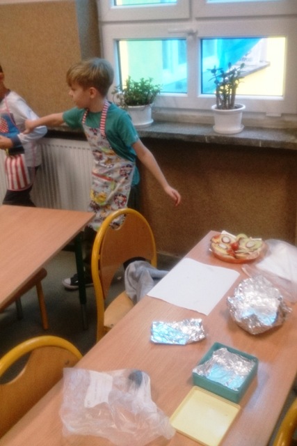 Tradycyjnie jak co roku, uczniowie edukacji wczesnoszkolnej naszej szkoły wzięli udział w ogólnopolskiej akcji pod nazwą „8 listopada – Dzień Śniadanie Daje Moc” prowadzonej w ramach programu „Śniadanie Daje Moc”. W klasach przeprowadzono z dziećmi rozmowę na temat zdrowego odżywiania i roli śniadania jako pierwszego posiłku dnia. Przypomniano o wartościach odżywczych spożywanych produktów, a szczególnie warzyw i owoców. Następnie przestrzegając podstawowych zasad higieny, uczniowie samodzielnie wykonali zdrowe i bardzo apetyczne kanapki z przyniesionych z domu produktów. Po zakończonej pracy zadowoleni i dumni z siebie zasiedli wspólnie do stołu i ze smakiem zjedli własnoręcznie przygotowane śniadanie.