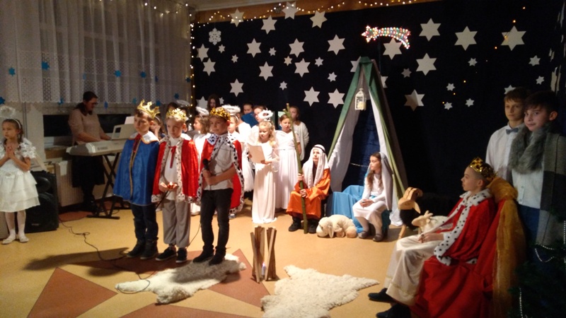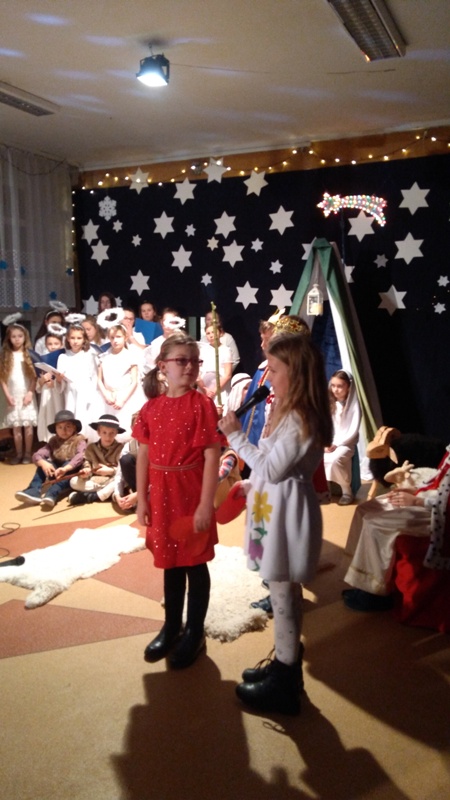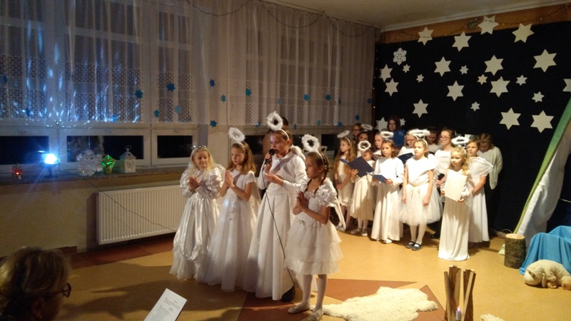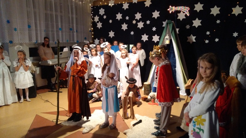 Tegoroczna inscenizacja jasełek odbyła się dwukrotnie w tym roku szkolnym. Po raz pierwszy uczniowie wystąpili przed rodzicami 18 grudnia, a po raz drugi przed całą społecznością szkolną 20 grudnia. Uczniowie wprowadzili nas w cudowną atmosferę Świąt Bożego Narodzenia opowiadając historię narodzenia Pana Jezusa. Swoim anielskim śpiewem wzbogacił atmosferę chór szkolny pd batutą pani Beaty Bajcer. Na zakończenie przedstawienia, w imieniu Rady Rodziców naszej szkoły, pan Rosiński wręczył wszystkim zaangażowanym aktorom słodycze. Pani dyrektor Bożena Lorent podziękowała dzieciom za śliczny spektakl, paniom przygotowującym dzieci, Ewy Chruszczewskiej i Beacie Kunie oraz wszystkim zebranym za przybycie i złożyła życzenia świąteczne. Należy również dodać, że podczas jasełek odbywał się kiermasz stroików świątecznych, przygotowany przez Radę Rodziców naszej szkoły oraz panią Beatę Lemiszkę. Wszystkim zaangażowanym rodzicom oraz pani Beacie serdecznie dziękujemy.