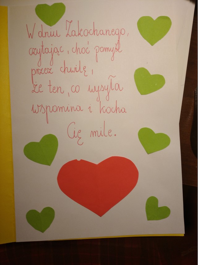 Wykonaj kartkę walentynkową z życzeniami – napisz coś miłego, co chciałbyś/chciałabyś przekazać innym. Możesz w ten sposób sprawić komuś radość i wywołać uśmiech na twarzy- więc warto.
