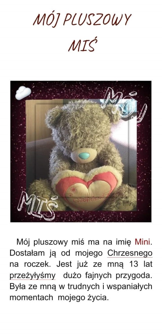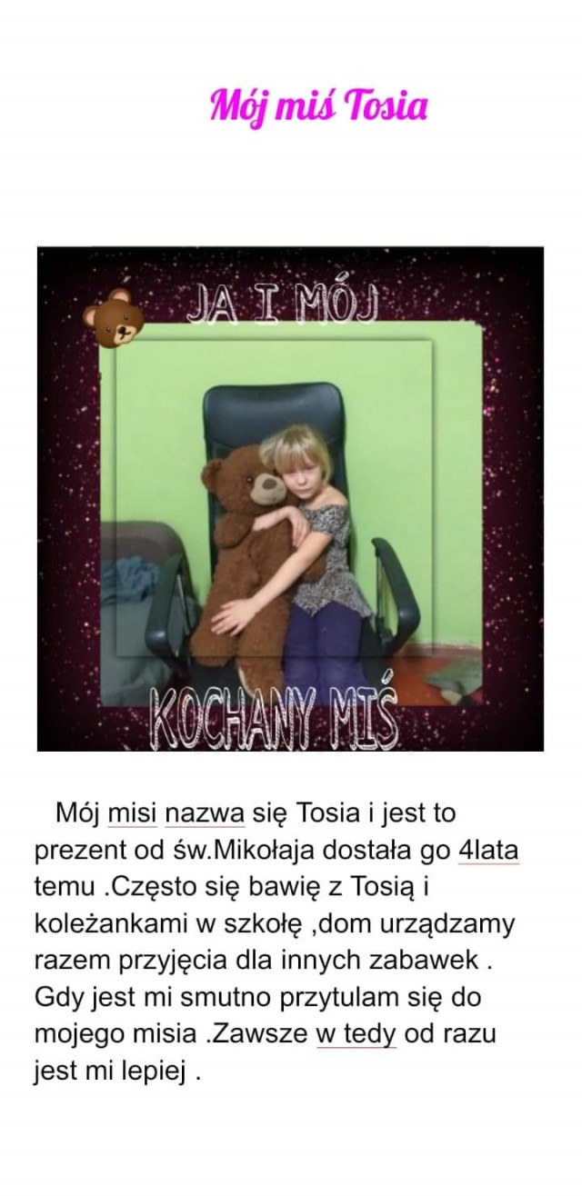 i wiele innych. Dziękujemy za zdjęcia ze swoimi pluszakami oraz opowieści o misiach: Śnieżce, Edziu, Pysiu, Łatku, Pafnucym, Miluszku, Misiu-Żołnierzu, Wiesławie, Kubusiu.
