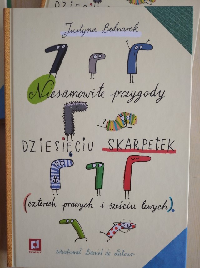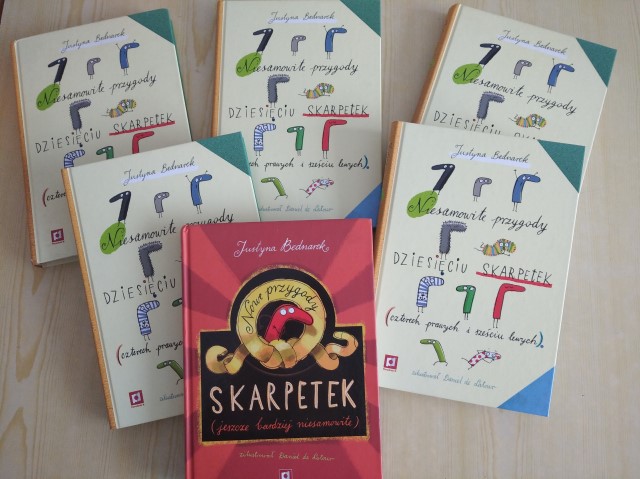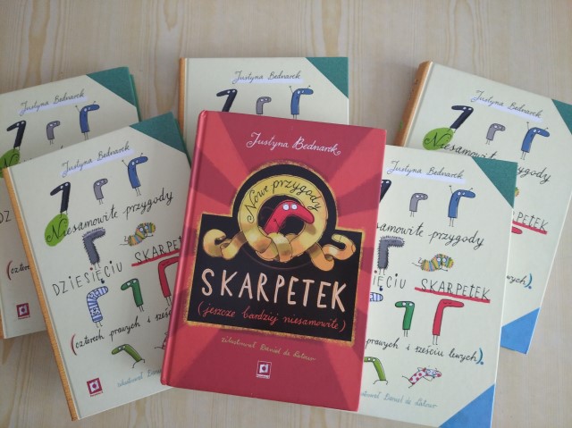 JednoczeÅ›nie zapraszamy i gorÄ…co polecamy książki z naszej szkolnej biblioteki, które opowiadajÄ… niezwykÅ‚e, trochÄ™ szalone i barwne przygody skarpetek. Warto zanurzyć siÄ™ w lekturze książek Justyny Bednarek pt. " Niesamowite przygody dziesiÄ™ciu skarpetek (czterech prawych i szeÅ›ciu lewych)" oraz "Nowe przygody skarpetek".Â