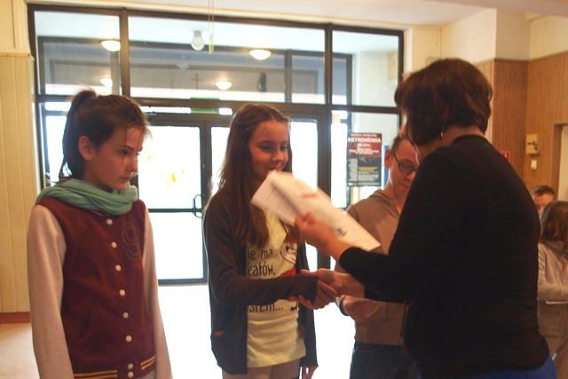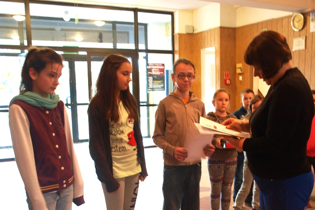 Wojewódzkie Konkursy Przedmiotowe w roku szkolnym 2014/2015 dobiegły końca. Kilku uczniów naszej szkoły może poszczycić się dobrymi wynikami w konkursie polonistycznym, matematycznym, historycznym czy konkursem w języka angielskiego. W nagrodę za wspaniałe współzawodnictwo i reprezentowanie Gminy Olszanka wszystkim uczniom reprezentującym naszą gminę, pani Wójt - Aneta Rabczewska - ufundowała pamiątkowe dyplomy. W szczególności wyróżniła ucznia klasy szóstej Jakuba Oleksego i ufundowała dla niego nagrodę w postaci tableta. Dyplomy i nagrody w imieniu pani Wójt zostały wręczone podczas apelu przez panią Dyrektor - Bożenę Lorent. Wśród nagrodzonych znalazła się uczennica klasy piątej Kaja Gall oraz uczniowie klasy szóstej: Wiktoria Klakurka i Jakub Oleksy.
