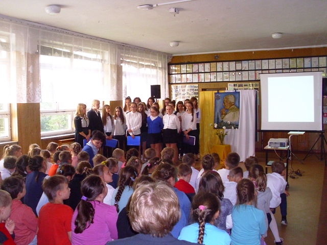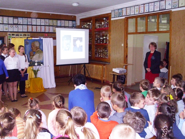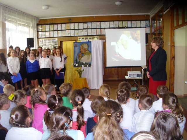 Papież Jan Paweł II, dzisiaj Sługa Boży, był niezwykłym człowiekiem w dziejach Polski i całego świata. Jego życie, czyny, nauki i wartości, które głosił zmieniły losy wielu ludzi, a nawet narodów. Już teraz mówi się o Papieżu- Jan Paweł II - Wielki, gdyż wielki był jego pontyfikat. Kierował on zawsze nasze myśli ku Bogu, niestrudzenie głosił Ewangelię, całym swoim życiem świadczył że Bóg jest wszędzie i wszystko zależy od Niego. W czasie ponad 26 lat Ojciec Święty odbył aż 104 pielgrzymki, odwiedził 132 kraje, przebył w sumie podczas swych podróży 1 mln 600 tysięcy km. Dziewięć razy odwiedził Polskę, około 500 osób ogłosił świętymi i mianował 232 kardynałów. Pozostawił po sobie ogromny dorobek literacki, napisał: 14 encyklik, 14 adhortacji, 11 konstytucji apostolskich, 43 listy apostolskie. Wygłosił aż 2400 przemówień.
