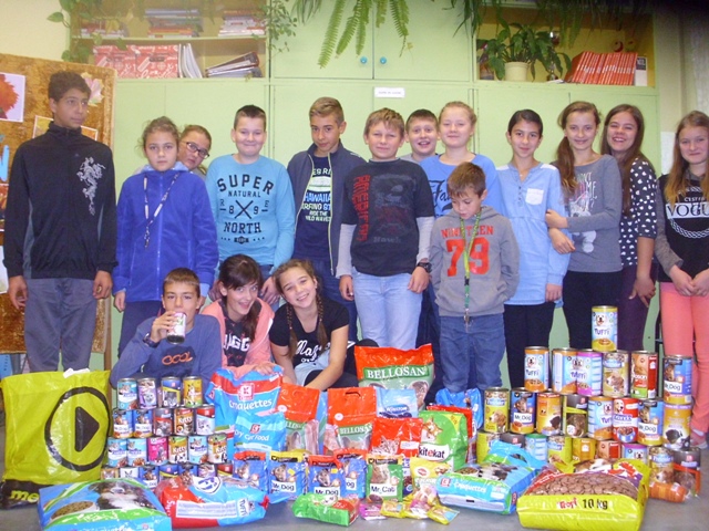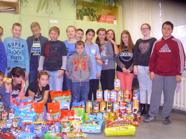 Uczniowie ze szkoły w Olszance, wrażliwi na krzywdę zwierząt, po raz olejny ochoczo przystąpili do akcji charytatywnej na rzecz bezdomnych psów i kotów z brzeskiego Przytuliska „Przytul Psisko”. Pomysł narodził się spontanicznie, dzięki uczennicy Wiktorii Machowskiej, która bardzo szybko swoim zapałem i miłością do zwierzaków zaraziła wszystkich. Każdy chciał pomóc. Okazało się, że w tej klasie jest wielu miłośników zwierząt i każdy ma dobre serduszko. Z dnia na dzień przybywało karmy i darów dla zwierząt. Zbiórka trwała przez miesiąc. W tym czasie zebrano 65,5 kilogramów suchej karmy dla psów i kotów, 24 dużych i 18 małych puszek z mięsną karmą, 8 saszetek z przysmakami dla kotków, 2 paczuszki smakołyków dla piesków, poza tym, narzuty, koce