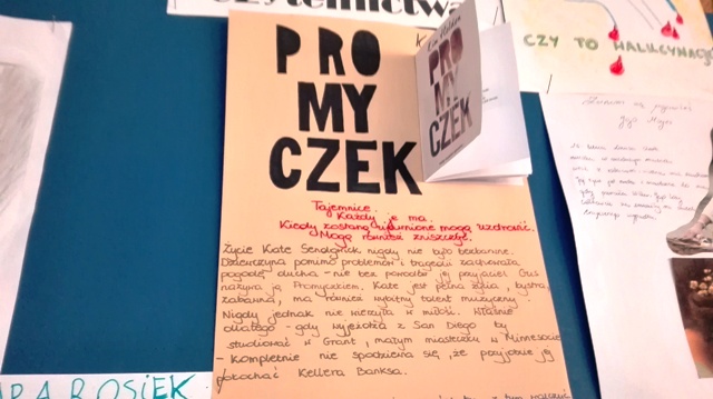 Od kilku miesięcy nasza szkoła uczestniczy w Narodowym Programie Rozwoju Czytelnictwa, w związku z tym podjęliśmy szereg zadań mających promować czytelnictwo wśród młodych. Prowadzona jest intensywna kampania, mająca zachęcić nastolatków do sięgania po nowości czytelnicze. Każda klasa ponadto została zobligowana do zrealizowania projektu edukacyjnego, który będzie inspirowany przeczytaną książką. I tak klasy II PG na przełomie X/XI przygotowały akcję „Z książką mi do twarzy”. Ideą akcji było sfotografowanie się podczas czytania. Uczniowie wybrnęli z tego obronną ręką, niektóre aranżacje były naprawdę ciekawe. Można było zobaczyć gimnazjalistów, którzy z powodzeniem łączą przyjemne z pożytecznym i czas na siłowni spędzają z ulubioną lekturą. Natomiast klasy III tym samym czasie miały przygotować plakat promujący wybraną pozycję. Gimnazjaliści skrupulatnie wypełnili swoje zadanie, niektóre prace były niesamowite, ujmowały swoją oryginalnością. Na szczególne wyróżnienie zasługują trzy prace, należące do Natalii Litwińczuk, Michała Kruczka i Martynki Stefanik. Natalia pokazała swoje wyjątkowe umiejętności i wykonała piękny szkic do powieści Beccy Fitzpatrick. Michał Kruczek zaprojektował okładkę, która trafnie oddaje klimat powieści Zygmunta Miłoszewskiego „Domofon”. Z kolei Martyna z niezwykłą starannością wykonała plakat książki „Promyczek”, dołączając mikroksiążkę wypełnioną sentencjami z utworu.