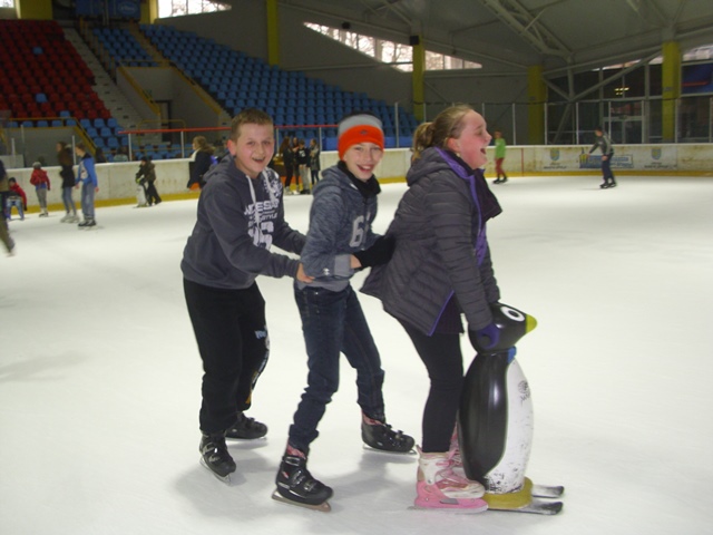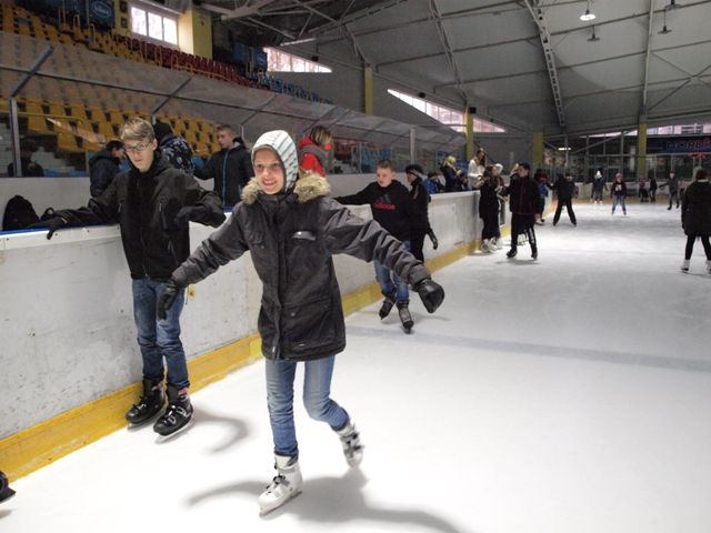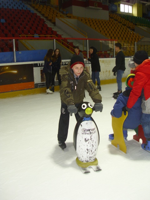 Coroczny wyjazd na sztuczne lodowisko „Toropol” w Opolu to już tradycja w naszej szkole. W tym roku na ogromnej tafli swoich sił próbowali zarówno uczniowie klas 4 – 6 szkoły podstawowej jak i gimnazjaliści z klas 1-3, łącznie 75 podpopiecznych. Dla niektórych uczniów była to jedyna możliwość spróbowania swoich sił na lodzie. Znaleźli się i tacy, którzy fantastycznie poruszali się na łyżwach pokazując innym piruety czy jazdę do tyłu. Radości było co niemiara.Jazda na lodzie niesie jednak pewne ryzyko. Zdarzały się też bolesne upadki podczas jazdy, stłuczenia, a nawet złamanie nogi. Mamy jednak nadzieję, że nie zniechęcą one do podejmowania kolejnych prób jazdy na łyżwach.