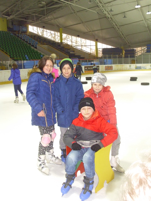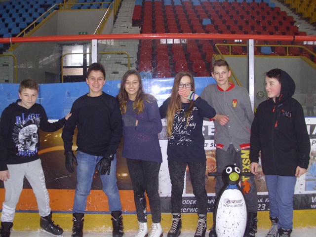 Coroczny wyjazd na sztuczne lodowisko „Toropol” w Opolu to już tradycja w naszej szkole. W tym roku na połowie tafli swoich sił próbowali zarówno uczniowie klas trzecich, czwartych, piatych i szostych szkoły podstawowej jak i gimnazjaliści z klas 1-3, łącznie 70 podopiecznych. Dla niektórych uczniów była to jedyna możliwość spróbowania swoich sił na lodzie. Znaleźli się i tacy, którzy fantastycznie poruszali się na łyżwach pokazując innym piruety czy jazdę do tyłu. Radości było co niemiara. Jazda na lodzie niesie jednak pewne ryzyko. Zdarzały się też bolesne upadki podczas jazdy, stłuczenia. Na szczęście w tym roku obyło się bez złamań :).