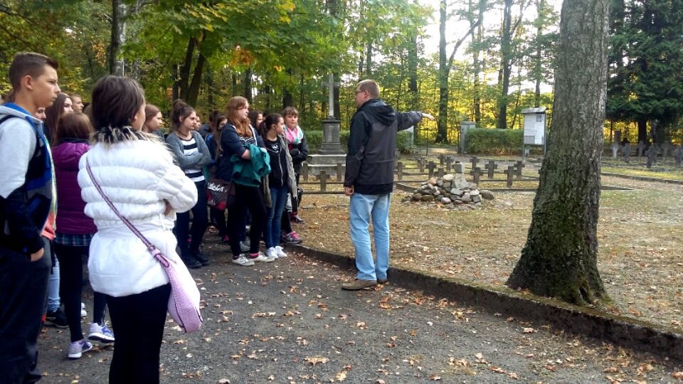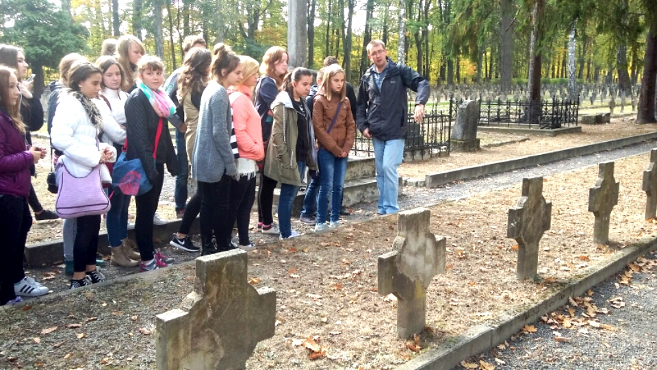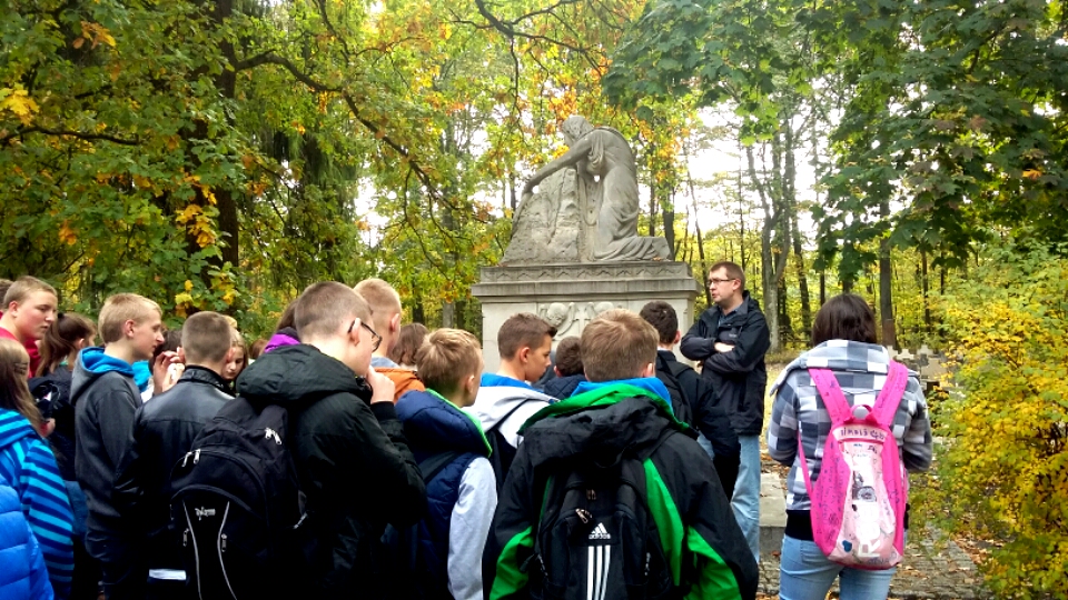 Na początku przewodnik oprowadzał nas po wystawach, opowiadając, kim był jeniec i jak wyglądało jego życie. Następnie wraz z przewodnikiem pojechaliśmy na Stary Cmentarz Jeniecki, by zwiedzić pomnik poświęcony jeńcom włoskim oraz pomnik jeńców serbskich. Kolejnym etapem wycieczki był Cmentarz Jeńców Radzieckich i Pomnik Martyrologii Jeńców Eojennych. Na koniec w pojechaliśmy zobaczyć baraki jenieckie, w których obejrzeliśmy spektakl pt. „Przerzucane słowa” w reżyserii Andrzeja Czernika