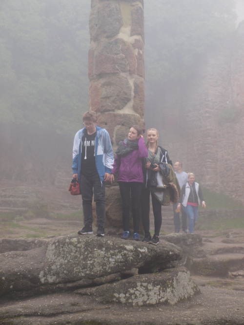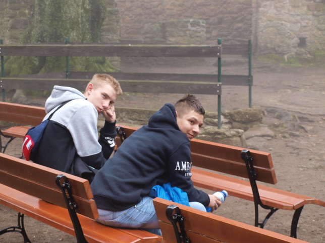 W drodze do Szklarskiej Poręby zatrzymaliśmy się przy ruinach zamku książęcego w Bolkowie. Pan przewodnik opowiedział nam o historii zamku i jego właścicielach. Kolejnym punktem programu było zwiedzanie Muzeum Karkonoskiego - Domu Gerharta i Carla Hauptmannów, gdzie poznaliśmy historię dwóch wybitnych pisarzy. Weszliśmy na teren Karkonoskiego Parku Narodowego kierując się w stronę zamku usytuowanego nieopodal Jeleniej Góry-Sobieszowa, na szczycie góry Chojnik. Góra ta wznosi się na wysokość 627 metrów n.p.m., a od jej południowo-wschodniej strony znajduje się 150-metrowe urwisko opadające do tzw. Piekielnej Doliny. Schodząc z góry rozdzieliliśmy się na dwie grupy. Jedna wędrowała czarnym szlakiem, druga schodziła szklakiem łagodniejszym - czerwonym. Głodni dotarliśmy do miejsca noclegowego mieszczącego się w lesie w miejscowości Piechowice usytuowanej w tzw. Szklarskiej Porębie Dolnej. W ośrodku wczasowym Horyzont przywitał nas bardzo miło gospodarz. Zjedliśmy pyszna obiadokolację, ale wcale nie zamierzaliśmy tak szybko zasnąć. W ośrodku mogliśmy pograć w piłkarzyki, tenisa stołowego, pogadać, pośmiać się. Był to naprawdę miło spędzony czas.
