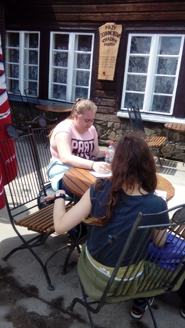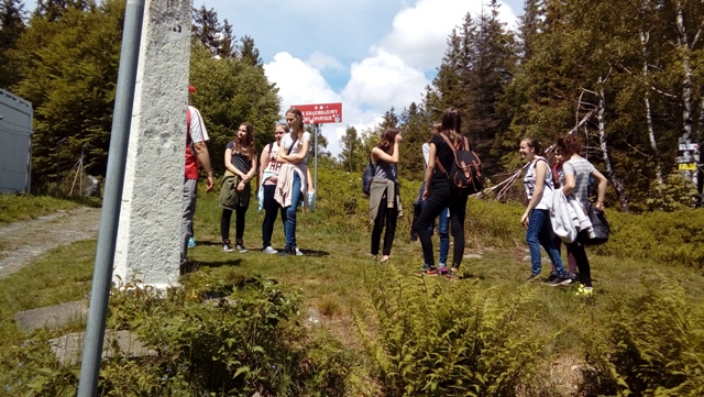 Wejście na szczyt dla każdego było nie lada wyzwaniem, może to nie ta wysokość, co Giewont , ale prawie 900 m n. p. m. to też wyczyn, szczególnie dla kogoś, kto nie jest zapalonym wędrowcem. Weszliśmy na wieżę widokową- to było dla wielu ogromny zwycięstwo . Tam otrzymaliśmy trzecie zadanie, które polegało na zapoznaniu się z mapą i przydatnymi informacjami o szczycie, który zdobyliśmy. Informacje te zapewne zostaną wykorzystane na lekcjach geografii.