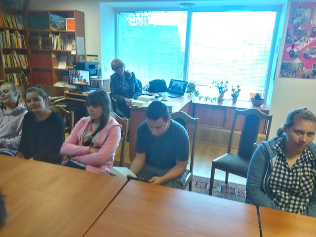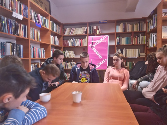 26 kwietnia odbyło się już drugie spotkanie w Gminnej Bibliotece Publicznej w ramach Dyskusyjnego Klubu Książki dla uczniów gimnazjum. Miało ono zainspirować uczniów do samodzielnego zapoznania się z tą lekturą. Ideą tej wizyty było przede wszystkim doskonalenie zapominanej już umiejętności wspólnego głośnego czytania. Pani Bożena Adamowicz zapoznała uczniów z sylwetką autora. Podczas tego spotkania uczniowie czytali sobie nawzajem, zwracali uwagę na interpretację tekstu, komentowali przeczytane fragmenty. Mogli znaleźć Oporów na mapie, a także obejrzeć jego zabytki- zamek i kościół, czyli miejsca, w których toczy się akcja powieści. Mieli okazję przypomnieć sobie sylwetki znanych detektywów literackich i filmowych, bowiem ich pseudonimy przybrali bohaterowie powieści. Na koniec zmierzyli się z logiczną zagadką i próbowali przy ograniczonej liczbie zapałek ułożyć trójkąty. Tę ponadgodzinną wizytę zakończył słodki poczęstunek przygotowany przez panią bibliotekarkę.