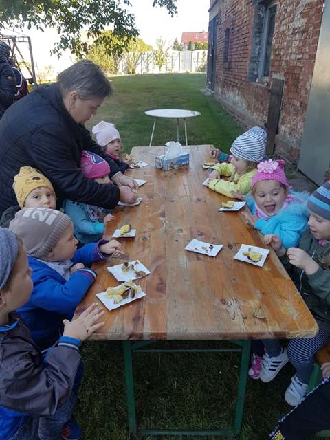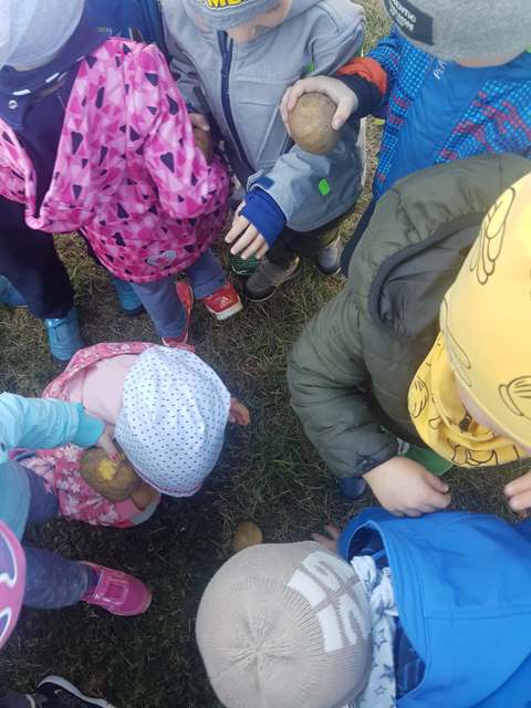 Jesień to czas zbiorów ziemniaków a przy tym świetna okazja do wspólnej zabawy i bliższego poznania tego warzywa. Z tej okazji skorzystały nasze przedszkolaki. Przedszkolaki poznały historię ziemniaka, dowiedziały się skąd on pochodzi i jak trafił do Polski. Przyswoiły sobie również wiele ciekawostek i informacji na temat ziemniaka. Wielką atrakcją było stemplowanie pieczątkami wykonanymi z ziemniaka. Dzięki gościnności mamy Milenki - p. Haliny Ryszkaniec mogliśmy ten wyjątkowy dzień spędzić w pięknym ogrodzie. Gdy ziemniaki piekły się w ognisku dzieci z twarzami pełnymi uśmiechów, brały udział w różnych konkursach i zawodach sportowych, w których głównym bohaterem był ziemniak. Wspólne zabawy były świetną okazją do integracji społeczności przedszkolnej.