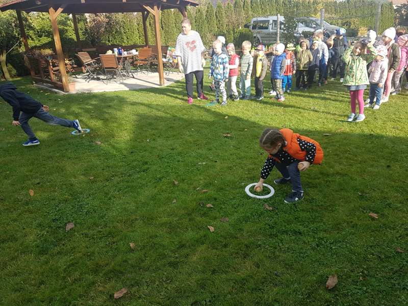 Dnia 19 września dzieci obchodziły święto pieczonego ziemniaka. Wielką niespodziankę sprawiła wszystkim piękna, jesienna pogoda, która bez żadnych przeszkód pozwoliła świętować na świeżym powietrzu. Dużo radości sprawiły wszystkim konkurencje sportowe oraz stemplowanie stempelkami wykonanymi z ziemniaków. Wspólne zabawy były świetną okazją do integracji społeczności przedszkolnej.