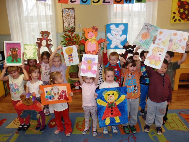 W listopadzie przedszkolaki uczestniczyły w obchodach Światowego Dnia Pluszowego Misia. Tego dnia każde dziecko przyszło do przedszkola ze swoim małym lub dużym przyjacielem – Misiem. Przybyły misie małe, średnie i bardzo duże, białe brązowe, zielone, a każdy był piękny i wyjątkowy. Korzystając z zaproszenia pani Bożeny Adamowicz udaliśmy się do Gminnej Biblioteki w Pogorzeli, w celu wspólnej zabawy w misiowej krainie. Dzieci poznały historię święta, wspólnie recytowały wiersze o misiach, bawiły się przy piosenkach: „Dwa malutkie misie”, ‘Jadą, jadą misie”, kolorowały ulubione misie, konstruowały misia.Ten dzień pełen był uśmiechu oraz wspólnej zabawy, jednak najwięcej radości sprawił dzieciom sam fakt zaprezentowania swojego misia kolegom i możliwość zabawy z pluszakiem.