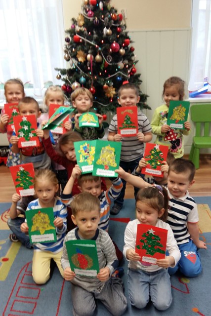 17 grudnia dzieci poznały zwyczaj wysyłania życzeń świątecznych. Z wielkim zaangażowaniem wykonały pomysłowe kartki świąteczne i redagowały życzenia dla bliskich osób.