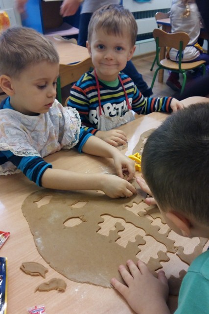 16 grudnia dzieci uczyły się jak przygotować wyśmienite pierniki świąteczne. Zagniatały ciasto, wałkowały, wycinały kształty, a największą radość sprawiło dekorowanie i ozdabianie pierników. To były bardzo ciekawe i „smakowite” zajęcia.