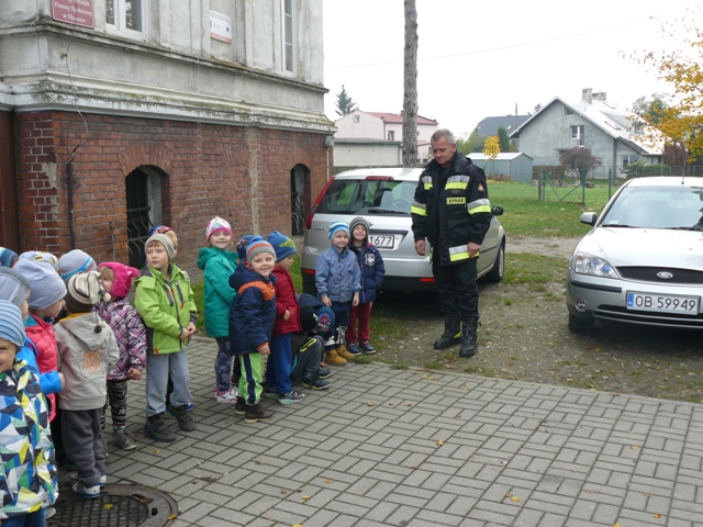 Dnia 27.10.2016r. w Publicznym Przedszkolu w Krzyżowicach odbyło się spotkanie z Komendantem Straży Pożarnej w Grodkowie Jarosławem Bryłą. Dzieci dowiedziały się na czym polega praca strażaków, jakim sprzętem się posługują. Mogły oglądać wyposażenie samochodu strażackiego i przymierzać strażackie kaski. Przedszkolaki prowadziły ciekawe rozmowy ze strażakami i pozowały do zdjęć. Dzięki takim spotkaniom dzieci: poznają ciężką i odpowiedzialną pracę strażaka; wiedzą jak dbać o własne i innych bezpieczeństwo; szanują trudną pracę strażaka; kształtują odpowiednie zachowania w trudnych sytuacjach. W trakcie spotkania Pan Komendant zaznajomił dzieci z ciekawostkami związanymi z ich pracą zawodową, przestrzeganiem zakazów, zachowaniem bezpieczeństwa w czasie: pożaru, burzy oraz wypadku. Dzieci dowiedziały się w jakich okolicznościach można wzywać straż pożarną, utrwalono numery alarmowe. Duża część przedszkolaków, szczególnie chłopcy, postanowili w przyszłości zostać strażakiem. Wiedza, którą dzieci nabyły utrwalana będzie przy każdej okazji podczas zajęć, aby nabrały pewności siebie w trudnych sytuacjach i mogły udzielić pomocy sobie i innym. Poprzez realizację podjętych działań w naszym przedszkolu, uczymy dzieci samodzielności, umiejętności przewidywania zagrożeń, unikania ich oraz radzenia sobie z nimi. Na zakończenie spotkania dzieci podziękowały strażakom i życzyły wytrwałości w codziennych zmaganiach z przeciwieństwami losu.