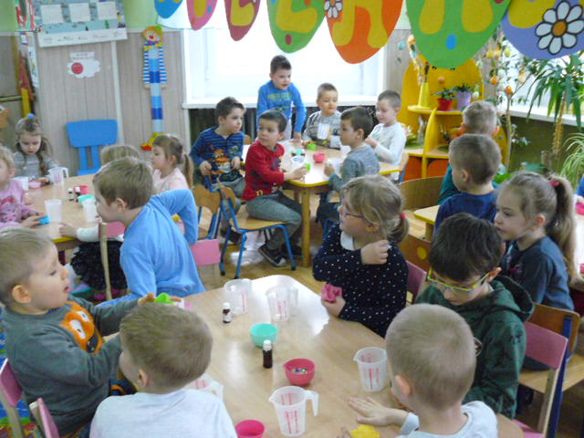 Dnia 27 marca w Przedszkolu w Krzyżowicach odbyły się WIELKANOCNE WARSZTATY MYDLARSKIE, które prowadziła firma Mydlinka z Opola. Dzieci samodzielnie wykonywały mydełka glicerynowe w wybranym przez siebie kształcie, kolorze oraz zapachu. Każdy mógł wybrać sobie obrazek, kolor brokatu, który następnie zatapiał w mydle. W czasie, gdy gotowe mydełka zastygały dzieci puszczały mydlane bańki oraz zamieniały się w aktorów i stworzyły inscenizację „Jak to się dzieje, że mydło myje?”. Zabawa była wspaniała, niezwykle twórcza, rozwijająca kreatywność oraz zdolność manualną. Już wkrótce wykonane mydełka będą wielkanocnym i pachnącym upominkiem dla najbliższych.