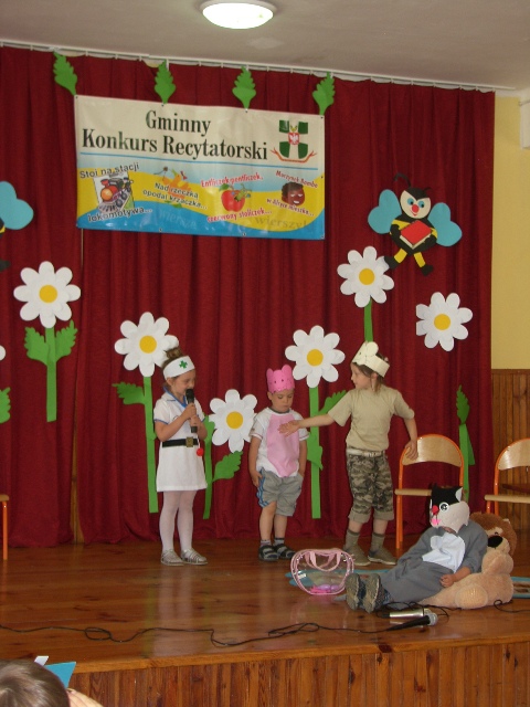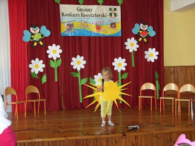 Dnia 13 czerwca odbył się międzyprzedszkolny konkurs recytatorski, w którym udział wzięły również nasze przedszkolaki. Celem konkursu było rozwijanie u dzieci właściwej wymowy, recytacji i interpretacji utworu oraz możliwość prezentacji przed publicznością. Konkurs, to również okazja do wzmacniania wiary we własne siły, to wspaniała zabawa posiadająca wiele aspektów nie tylko dydaktycznych, ale wychowawczych i społecznych. Nasze przedszkolaki zachwycały wdziękiem, barwnymi kostiumami oraz niepowtarzalną interpretacją utworów. Za co otrzymały dyplomy oraz nagrody książkowe.