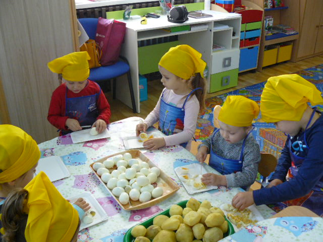 Z myślą o jarzynowych witaminkach dzieci postanowiły zrobić wspólnie pyszną sałatkę warzywną. Przy tej okazji przedszkolaki poznały wygląd, smak i zapach niektórych składników.