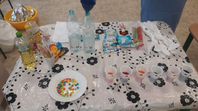 27 listopada 2020 r. w naszym przedszkolu zorganizowaliśmy dla dzieci spotkanie z chemikiem. Pani Ania zaprezentowała przedszkolakom proste ale ciekawe i efektowne doświadczenia chemiczne z wykorzystaniem łatwo dostępnych produktów tj.: olej, ocet, woda, proszek do pieczenia, soda.