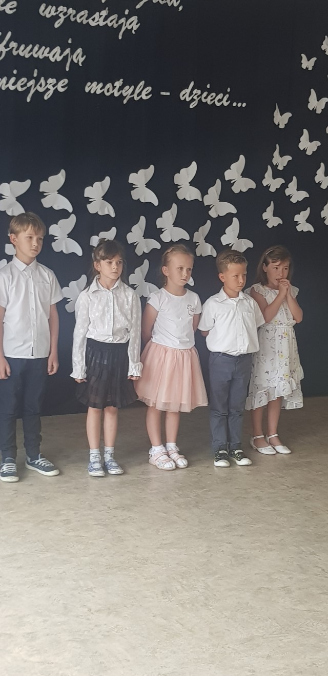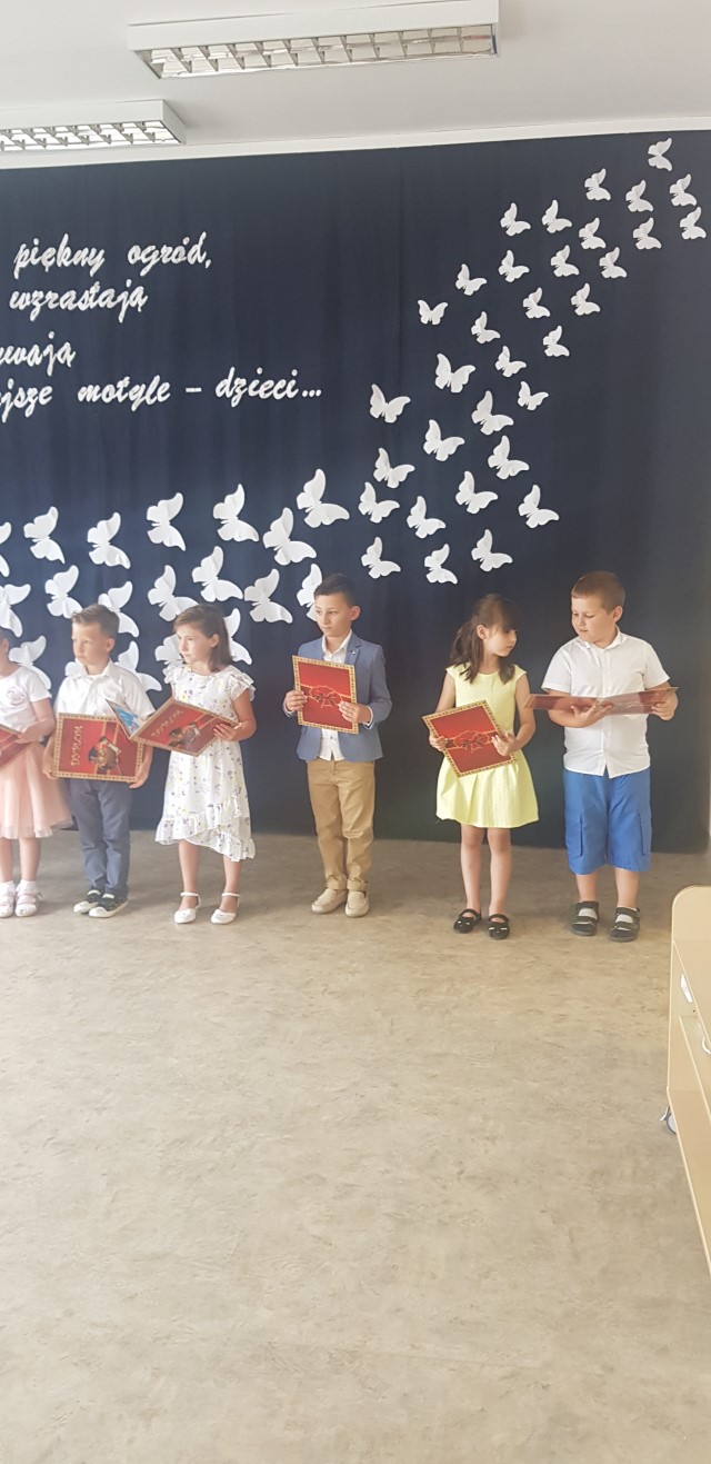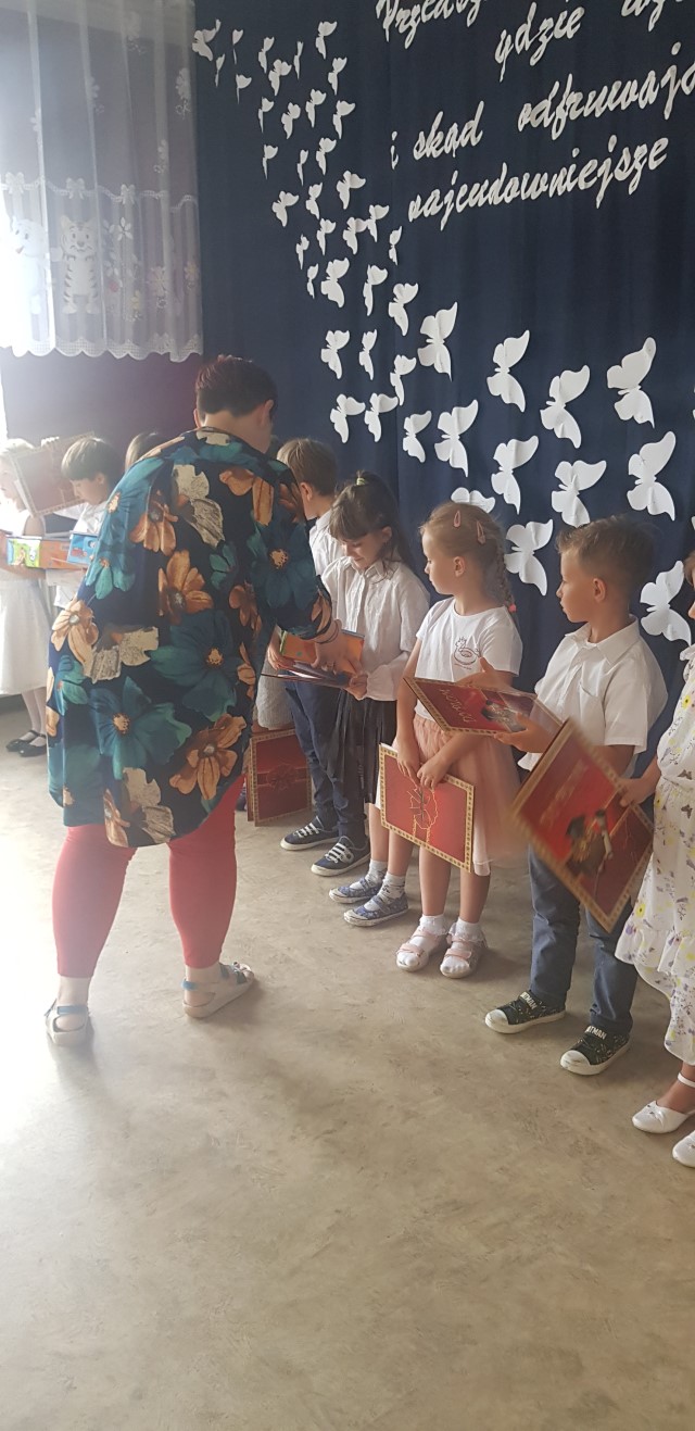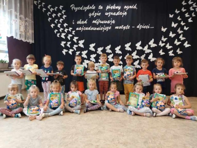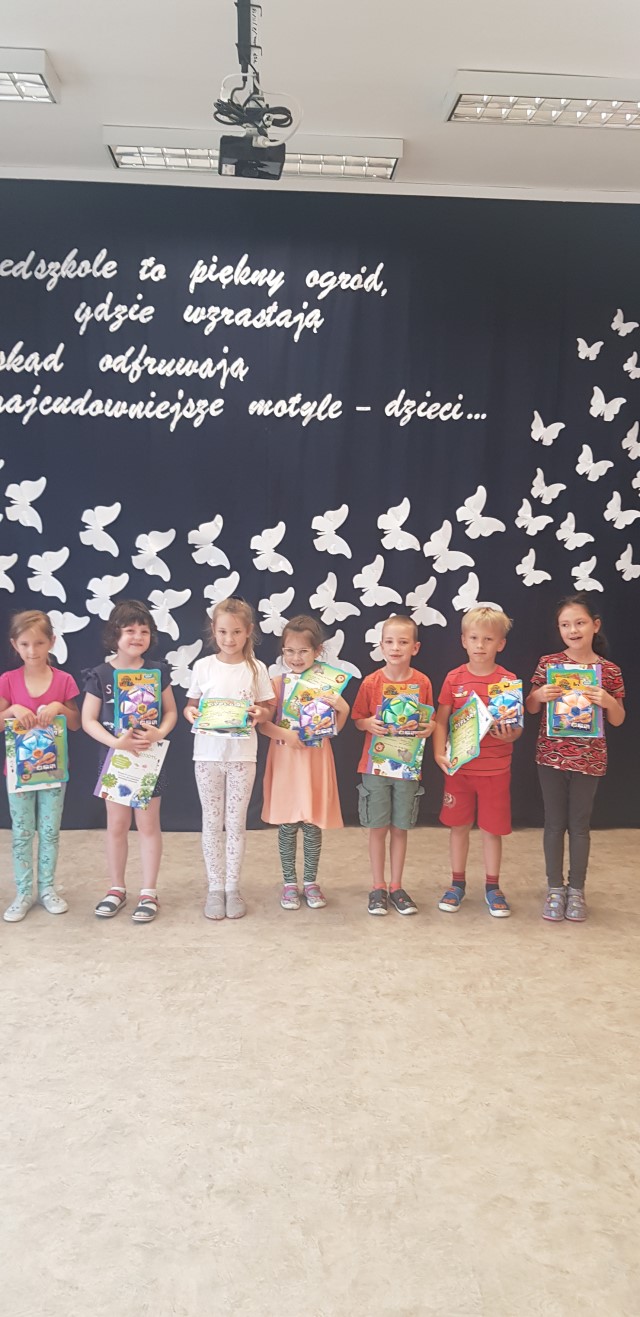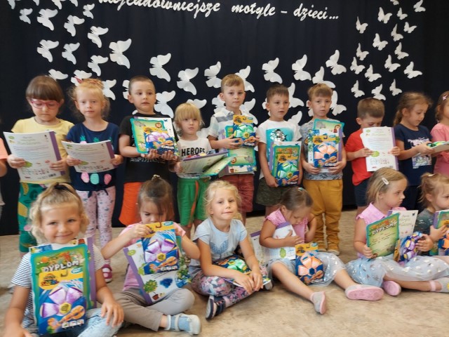 Był to czas niezwykły i niezapomniany, zarówno dla dzieci, rodziców, jak i pań nauczycielek. Skończył się bowiem 4 – letni okres przyjaźni, wspólnych zabaw i spotkań, wspólnej pracy. Dzieci, z maluszków, zagubionych i nieśmiałych, stały się samodzielnymi, odważnymi starszakami, pełnymi pomysłów, ciekawymi świata, chętnymi do podejmowania nowych, coraz trudniejszych zadań. Skończył się beztroski okres i nadszedł czas na przyjęcie innych obowiązków. Przedszkolaki zaprezentowały specjalnie na tę okazję występy artystyczne. Był Polonez, wiersze, tańce i piosenki. Na pamiątkę tego wydarzenia dzieci otrzymały pamiątkowe dyplomy, książki i wyprawkę plastyczną. Były także życzenia i podziękowania ze strony p. Dyrektor oraz Rodziców, nie zabrakło również łez wzruszenia. Ale tak to już jest, coś musi się skończyć, aby móc wejść w kolejny, nowy etap życia. Dziękujemy rodzicom za wspólnie spędzony czas, pomoc i wsparcie, wszystkim przedszkolakom natomiast życzymy udanych wakacji, samych sukcesów w szkole, uśmiechu na co dzień oraz nowych przyjaźni.