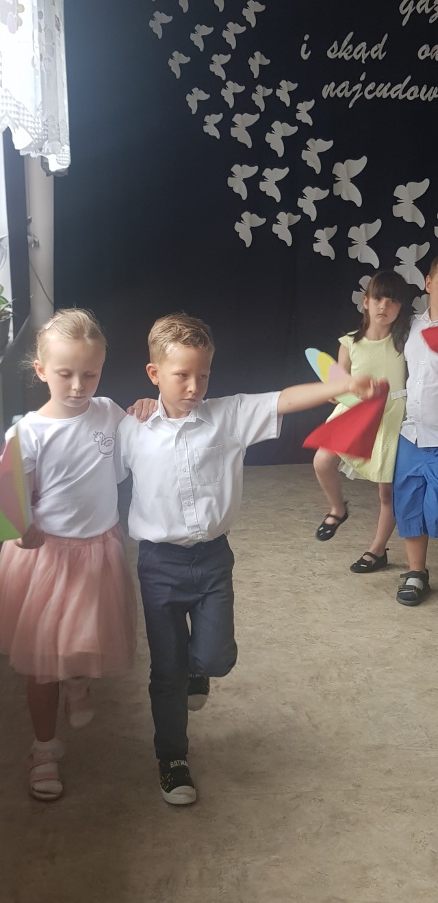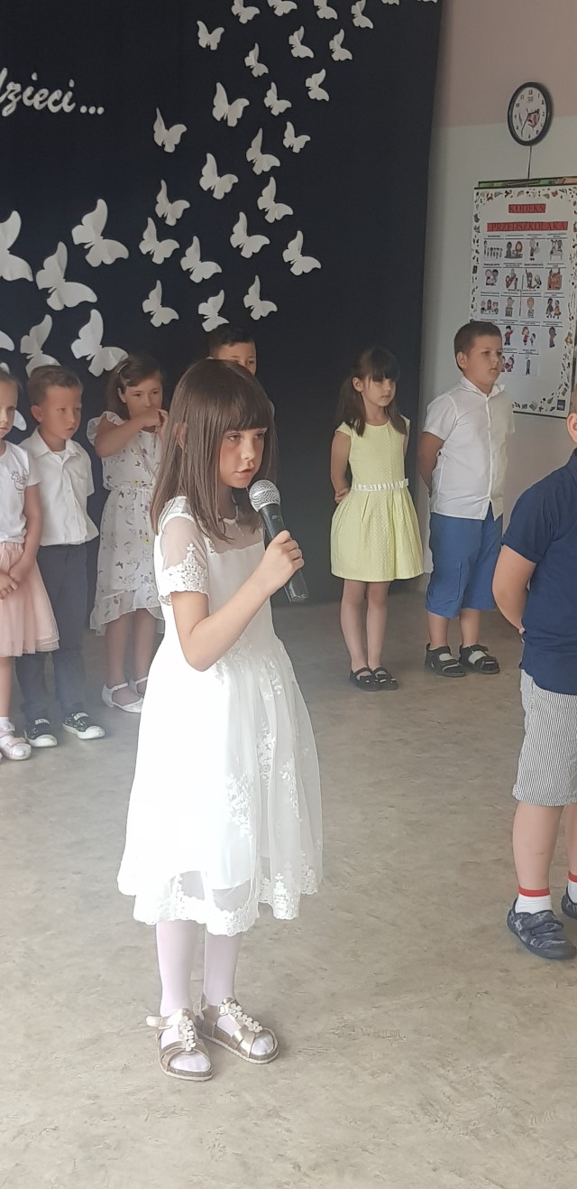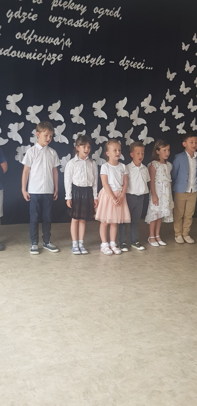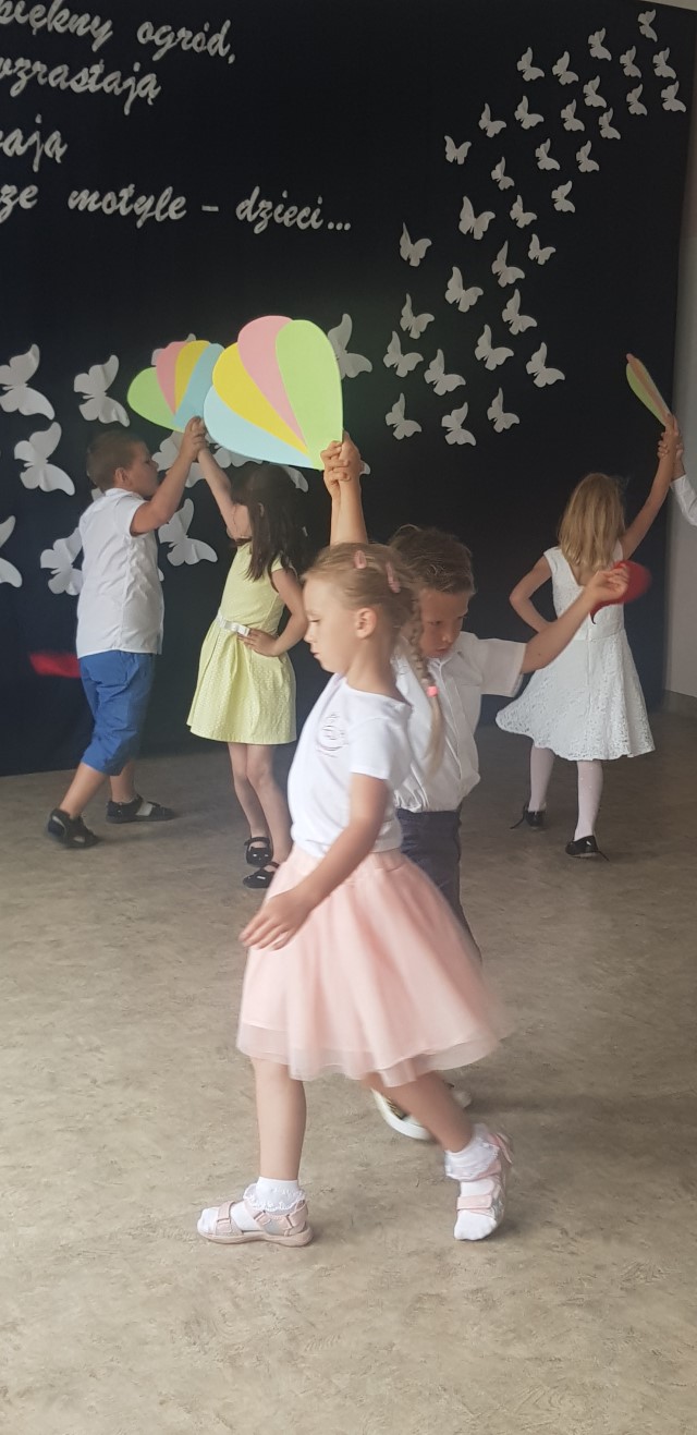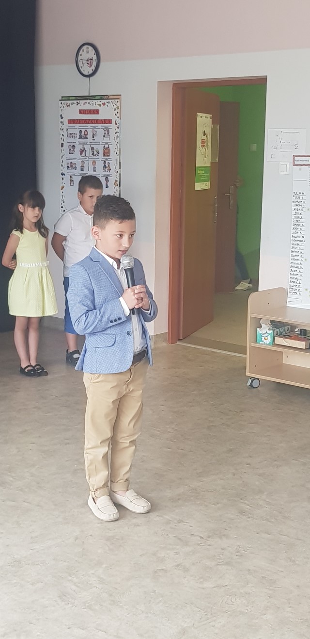 Był to czas niezwykły i niezapomniany, zarówno dla dzieci, rodziców, jak i pań nauczycielek. Skończył się bowiem 4 – letni okres przyjaźni, wspólnych zabaw i spotkań, wspólnej pracy. Dzieci, z maluszków, zagubionych i nieśmiałych, stały się samodzielnymi, odważnymi starszakami, pełnymi pomysłów, ciekawymi świata, chętnymi do podejmowania nowych, coraz trudniejszych zadań. Skończył się beztroski okres i nadszedł czas na przyjęcie innych obowiązków. Przedszkolaki zaprezentowały specjalnie na tę okazję występy artystyczne. Był Polonez, wiersze, tańce i piosenki. Na pamiątkę tego wydarzenia dzieci otrzymały pamiątkowe dyplomy, książki i wyprawkę plastyczną. Były także życzenia i podziękowania ze strony p. Dyrektor oraz Rodziców, nie zabrakło również łez wzruszenia. Ale tak to już jest, coś musi się skończyć, aby móc wejść w kolejny, nowy etap życia. Dziękujemy rodzicom za wspólnie spędzony czas, pomoc i wsparcie, wszystkim przedszkolakom natomiast życzymy udanych wakacji, samych sukcesów w szkole, uśmiechu na co dzień oraz nowych przyjaźni.