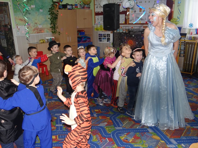 Bal karnawałowy dla przedszkolaków to dzień niezwykły, często wyczekiwany przez wiele tygodni. Jest atrakcją bardzo lubianą przez dzieci, dostarczającą im wielu przeżyć i radości szczególnie, że w tym roku zagościła u nas Elsa. Dzieci zostały przeniesione do Krainy Lodu. W rytm karnawałowej muzyki pokonywały wspólnie ciężką drogę do lodowego zamku królowej Elsy. Podczas wyprawy przedszkolaki skakały po krach, przeżywały wielką zamieć śnieżną i uczestniczyły w prawdziwej bitwie na śnieżki Nie zabrakło również zagadek i konkursów dla fanów Krainy Lodu. Na koniec balu przedszkolaki wspólnie zaśpiewały piosenkę „Mam tę moc”!