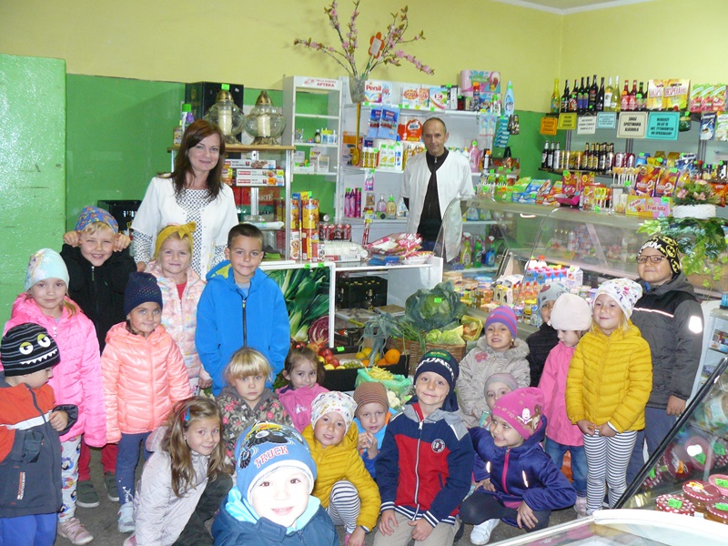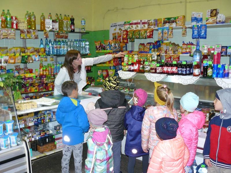 W miesiącu październiku przedszkolaki udały się na wycieczkę do sklepu owocowo-warzywnego, aby zobaczyć, jakie dary z sadu i ogrodu można tam kupić. Dzieci wykazały się ogromną wiedzą, bezbłędnie nazywały i wskazywały poszczególne warzywa i owoce. Na zakończenie podziękowały Pani Renatce za miłe przyjęcie. Była to bardzo ciekawa i pouczająca wycieczka.