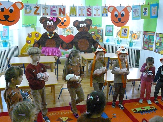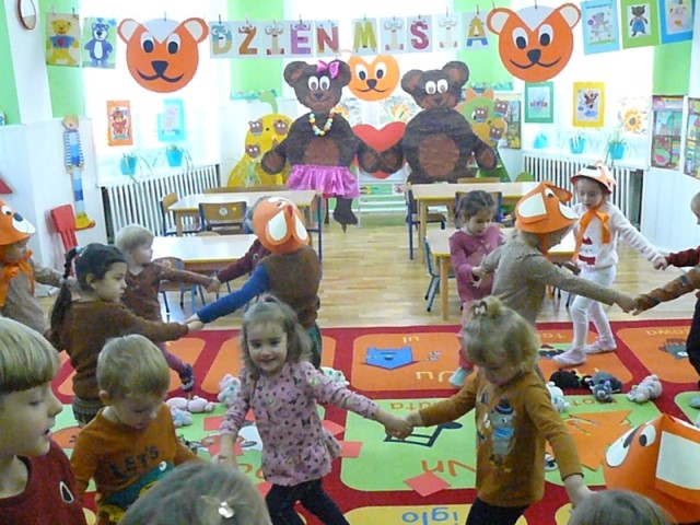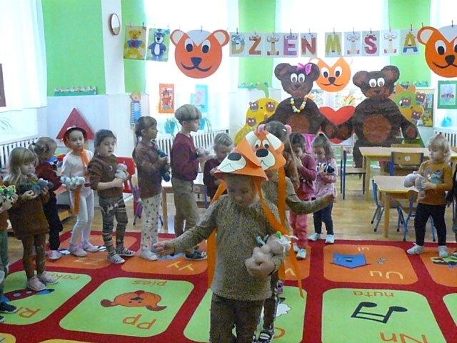 Za co lubimy listopad? Niewątpliwie jednym z powodów jest obchodzony w tym miesiącu Dzień Pluszowego Misia:) Święto wszystkich miękkich misiaków i oczywiście ich zwolenników. Uroczystość rozpoczęła się od MISIOWYCH WARSZTATÓW, na których dzieci samodzielnie wykonały swoją maskotkę. Następnie przedszkolaki zostały zaproszone do wspólnej zabawy w MISIOWEJ KRAINIE. Dzieci uczestniczyły w różnych zabawach ruchowych, konkursach, quizach, zgadywankach. Uroczystość przebiegła w bardzo miłej i serdecznej atmosferze.