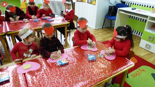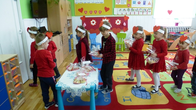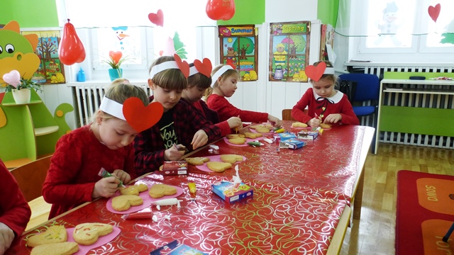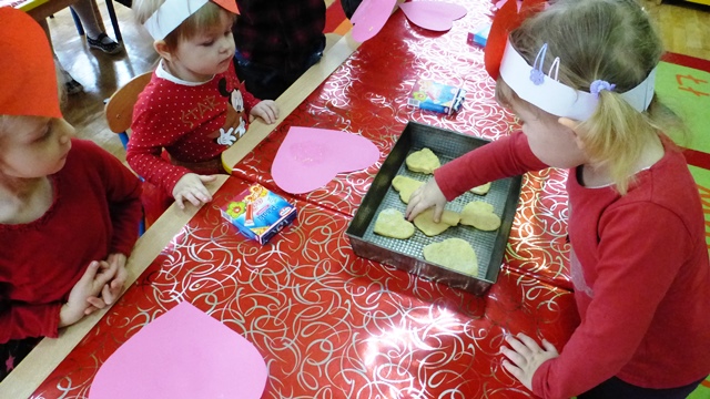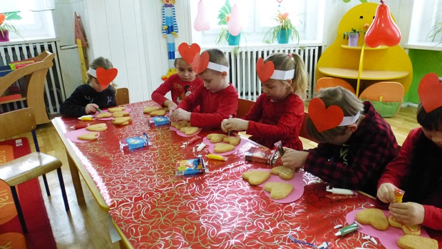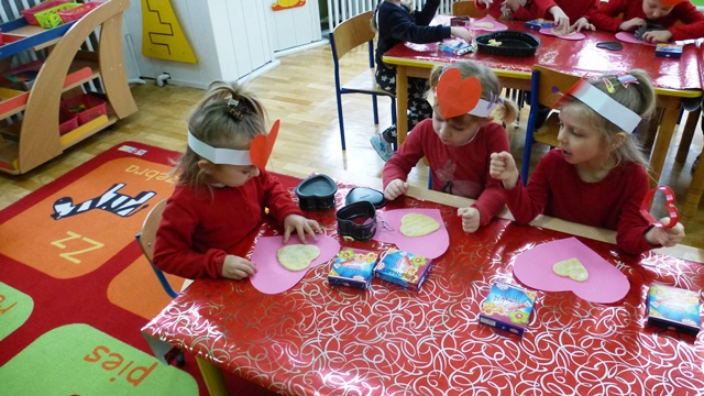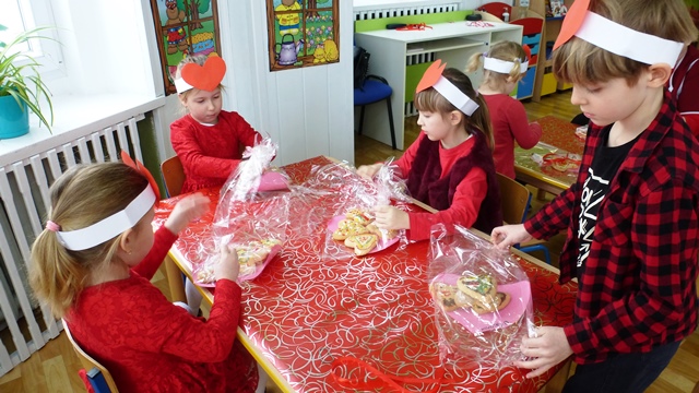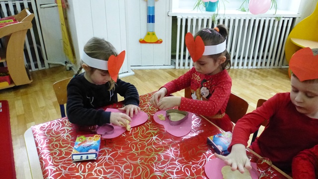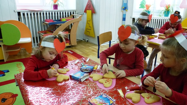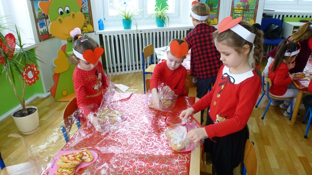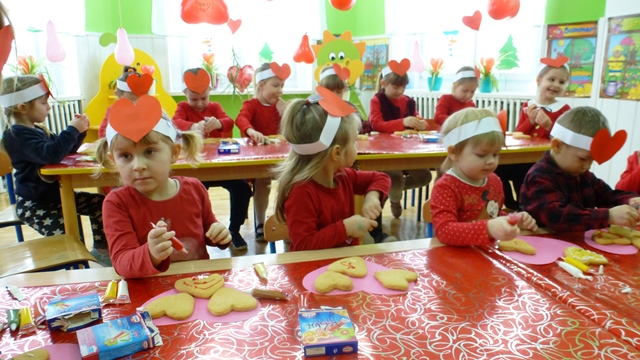 Walentynki to doskonaÅ‚a okazja do wzmocnienia wÅ›ród dzieci uczucia przyjaźni, sympatii i wzajemnej życzliwoÅ›ci. Sposobem na ksztaÅ‚towanie tych ważnych, życiowych wartoÅ›ci jest wspólna, radosna zabawa. 12 lutego przedszkolakom towarzyszyÅ‚o wiele atrakcji. Jednak najwiÄ™cej radoÅ›ci sprawiÅ‚y im zajÄ™cia kulinarne, podczas których dzieci przygotowaÅ‚y ciasteczka w ksztaÅ‚cie serca. Przedszkolaki z dużym zaangażowaniem uczestniczyÅ‚y w procesie powstawania sÅ‚odkich wypieków. Gotowe ciastka dzieci samodzielnie ozdobiÅ‚y lukrem i kolorowÄ… posypkÄ…. W ten sposób powstaÅ‚a nie tylko smaczna przekÄ…ska, ale również wyjÄ…tkowe, walentynkowe upominki, które podarowaÅ‚y w prezencie rodzicom.Â