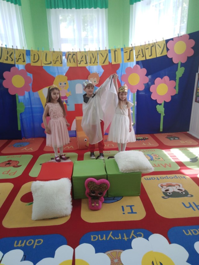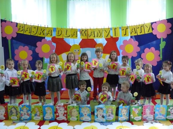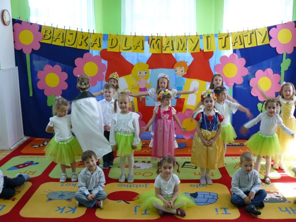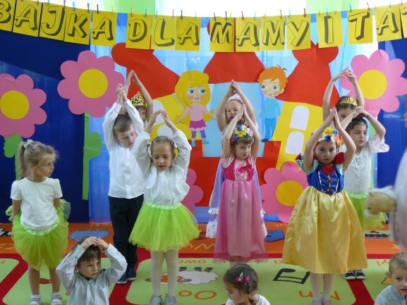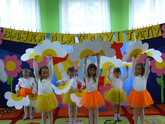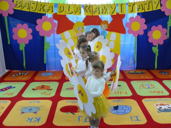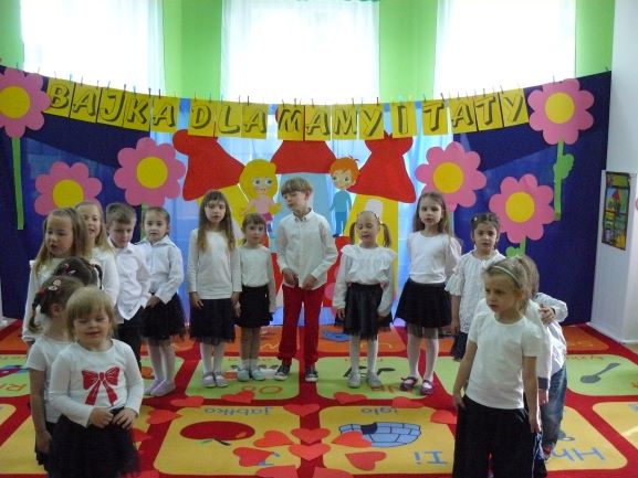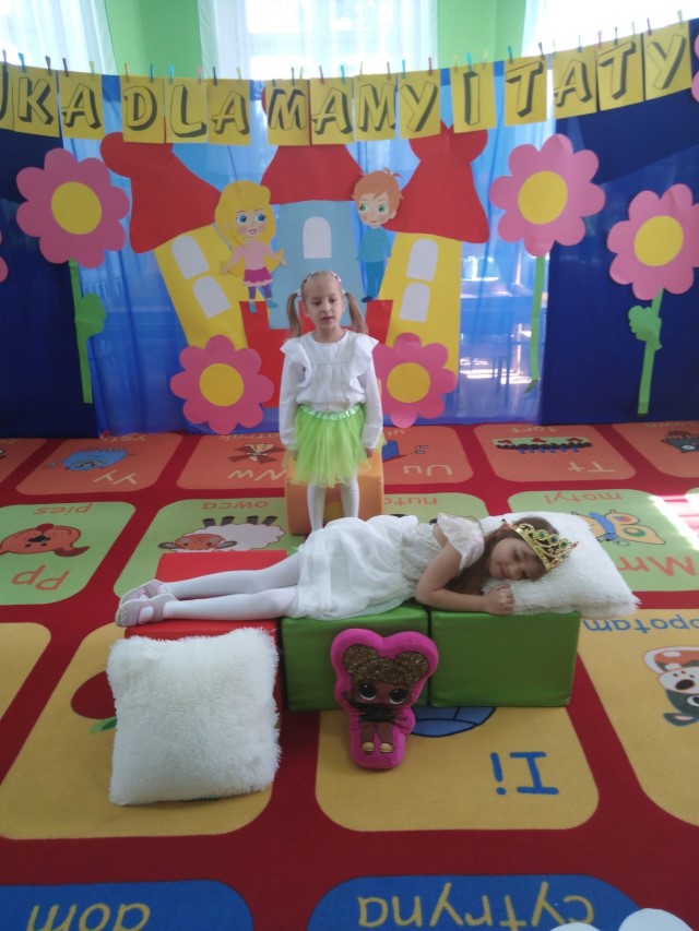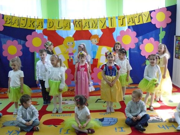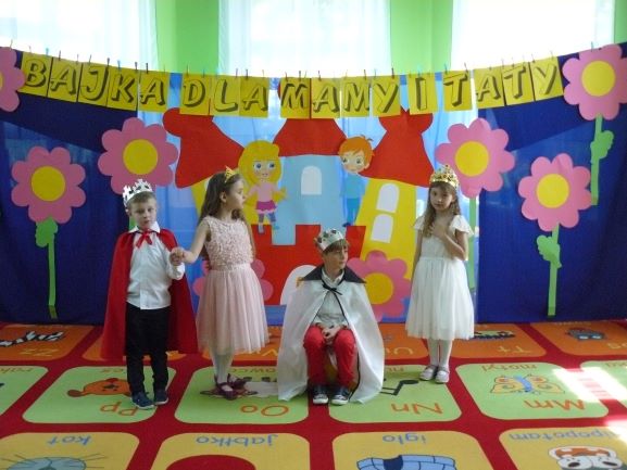 Z okazji Dnia Mamy i Taty przedszkolaki zaprosiły swoich rodziców na przedstawienie ” KSIĘŻNICZKA NA ZIARNKU GROCHU”. Rozbudzone zainteresowania teatralne miały swoje odzwierciedlenie w zaangażowaniu dzieci, które wcieliły się w różne postacie z bajki. Uwieńczeniem spotkania było podziękowanie RODZICOM za trud ich wychowania wyśpiewany w piosenkach, wierszach oraz tańcu ze stokrotkami. Dopełnieniem uroczystości było ofiarowanie RODZICOM pięknych upominków z najlepszymi życzeniami z okazji ich święta.