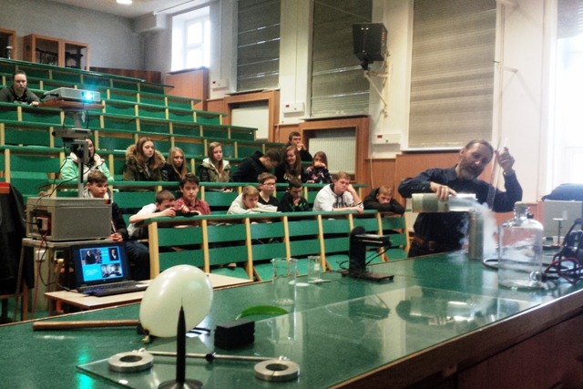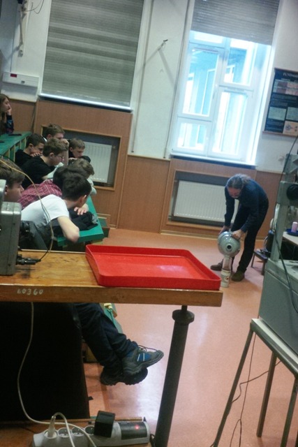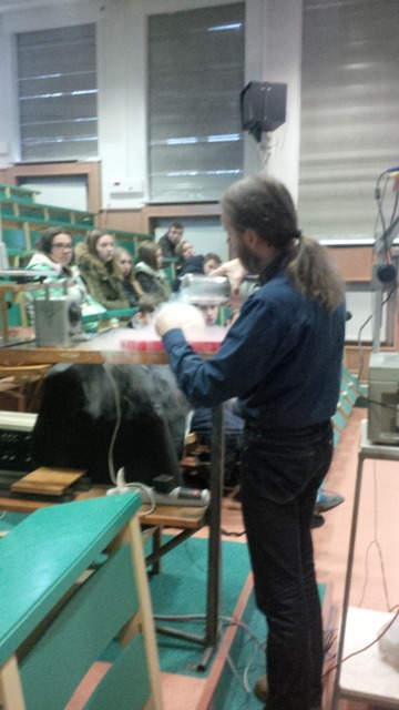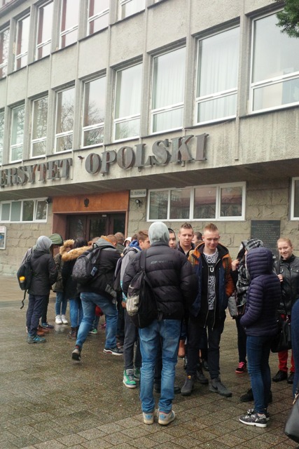 Pierwszym etapem wyprawy była Katedra Fizyki przy UO. Uczestniczyliśmy w wykładzie-dotyczył  ciekłego azotu i jego właściwości oraz wielu informacji na temat zera absolutnego. Wykład prowadził mgr Andrzej Trzebuniak, zaprezentował kilka ciekawych doświadczeń, których nie mielibyśmy okazji zobaczyć . Liczne wybuchy i niespotykane zjawiska sprawiały, że chcieliśmy czerpać jeszcze więcej wiedzy.Wszyscy z ciekawością słuchaliśmy i obserwowaliśmy doświadczeia, które wykonywał laborant, przy czym skrupulatnie tłumaczył, w jakim celu je wykonuje. Mówił bardzo interesujące rzeczy, o których nie mieliśmy pojęcia i przy tym był zabawny, dlatego nikomu się nie nudziło. To ważna lekcja fizyki, którą zapamiętamy na długo dzięki formie, w której została przekazana.