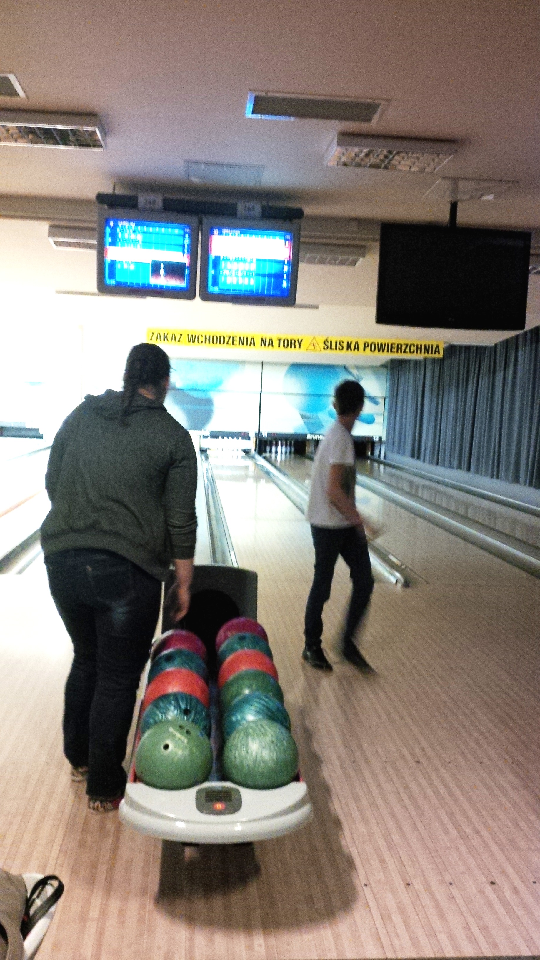 Następnym celem była opolska kręgielnia.Po dotarciu na miejsce dobraliśmy się w małe grupy i mogliśmy zaczynać grę. Przez godzinę ćwiczyliśmy rzuty kolorowymi kulami. Jednym szło lepiej, dla innych to był debiut.Zwycięstwa i porażki przyjmowane były z uśmiechem i ochotą do dalszej rywalizacji Czas jednak biegł nieubłaganie, godzina minęła jak z bicza trzasł.