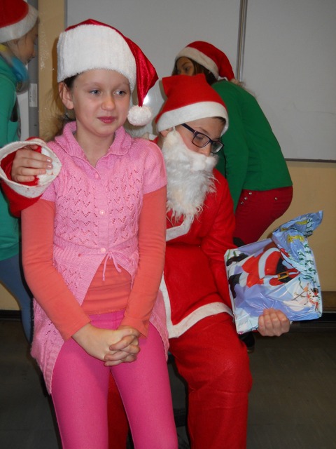 Tegoroczne mikołajki przyniosły ogromną radość wszystkim uczniom naszej szkoły. Mikołaj zawitał do klasy, która cały rok na niego czekała i w swoich listach chętnie zapraszała. Święty wręczył słodkie prezenty dzieciom. Warunkiem otrzymania podarunku była piosenka lub wiersz w wykonaniu osoby obdarowywawnej. Świętemu Mikołajowi towarzyszyły elfy, które z wyglądu przypominały nasze koleżanki z klasy szóstej. Grono Pedagogiczne naszej szkoły równiez zostało obdarowane przez Mikołaja - każdy nauczyciel otrzymał słodki wizerunek świętego. Mamy nadzieje, że juz nikt nie odważy się wątpić w istnienie Mikołaja!