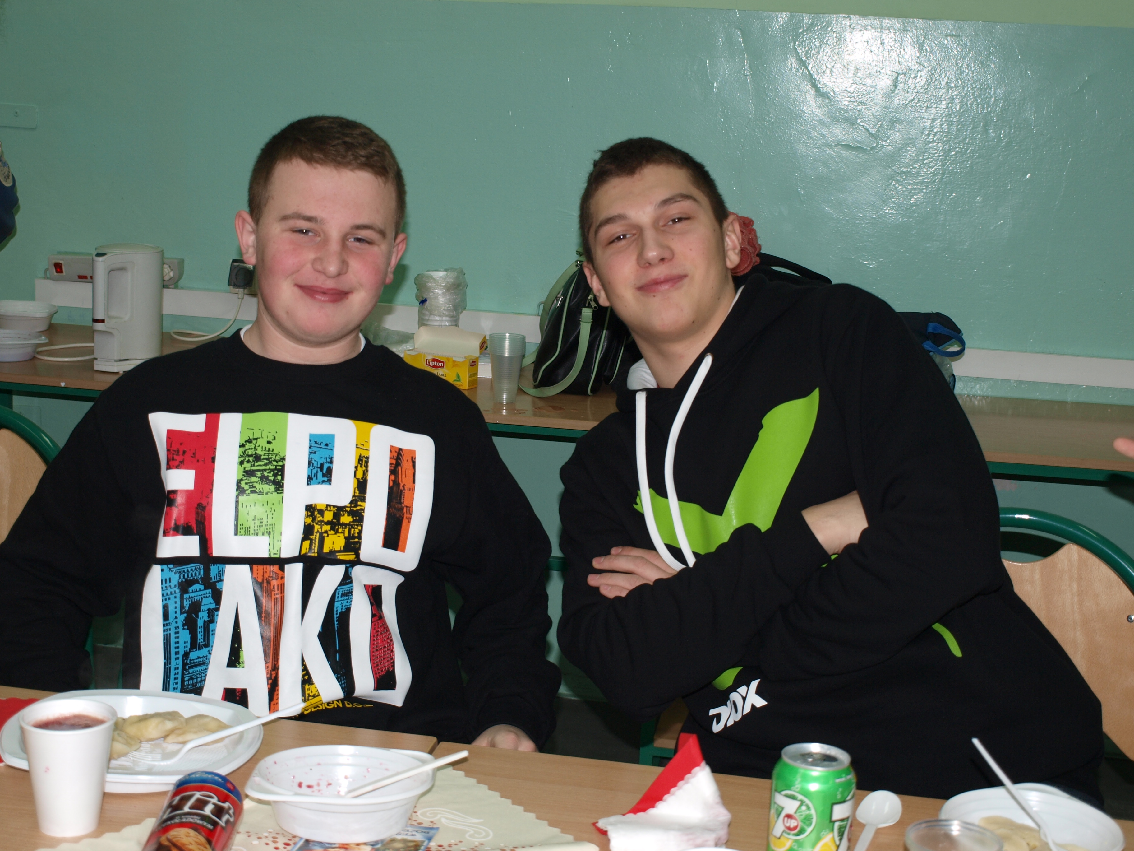 "Przybieżeli do Betlejem pasterze ..." - słowa i dźwięk tej kolędy można było usłyszeć podczas spotkań wigilijnych w klasach naszego gimnazjum. Była to dla nas okazja do łamania się opłatkiem, składania sobie życzeń z głębi serca płynących, wspólnego kolędowania. Opowiadaliśmy o tradycji związanej ze świetami Bożego Narodzenia, najsmaczniejszych potrawach, jakie można znaleźć na stołach wigilijnych w naszych domach. Spotkania wigilijne w klasach pozwalały nam poczuć świateczną atmosferę. W takim nastroju żegnaliśmy się w piątek 20 grudnia życząc sobie zdrowych, radosnych świąt.