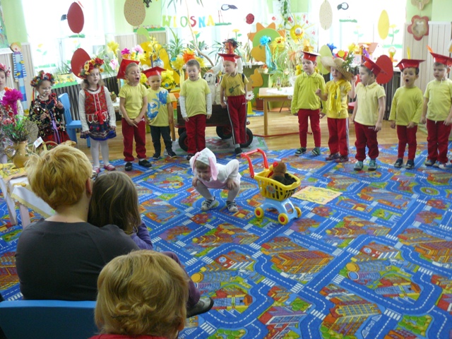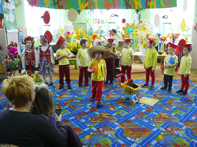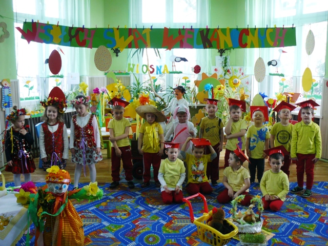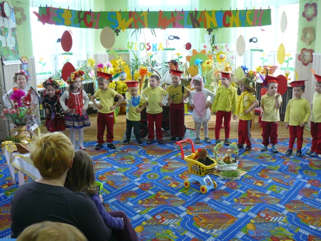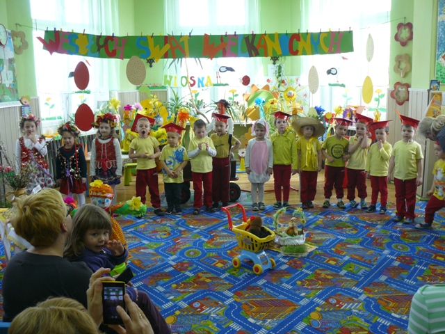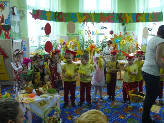 Dnia 23.03.2016r. w PP Krzyżowicach odbyło się przedstawienie z okazji ,,Świąt Wielkanocnych”. Dzieci zaprezentowały wiersze i piosenki o tematyce wielkanocnej, przypomniały także zwyczaje związane z tymi świętami: malowanie pisanek, śmigus -dyngus. Poprzez taniec i śpiew przedstawiły również mniej znane tradycje, jak zwyczaj obwożenia kogucikiem i zbierania jajek przez dzieci. Na zakończenie, jak stary obyczaj każe, dyngusiarze pokropili wszystkich wodą. Następnie przedszkolaki złożyły rodzicom świąteczne życzenia obdarowując ich wielkanocnym koszyczkiem. Również i maluszki otrzymały piękne paczuszki od wielkanocnego zajączka przygotowane przez Radę Rodziców. Na zakończenie uroczystości Pani Dyrektor Violetta Świder złożyła wszystkim zgromadzonym: ZDROWYCH, WESOŁYCH ŚWIĄT.