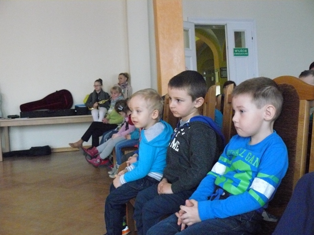 Dnia 12 kwietnia 2016r. dzieci z PP w Krzyżowicach oraz Olszanki wybrały się na wycieczkę do Państwowej Szkoły Muzycznej w Brzegu.Przedszkolaki miały możliwość poznania wyglądu i odgłosu wielu ciekawych instrumentów oraz ich nazw: flet, klarnet, saksofon, trąbka, puzon, gitara, ksylofon itp. Dzieci wysłuchały utworów, które popisowo zagrali im uczniowie tamtejszej szkoły. Jesteśmy przekonani, że niektóre z dzieci będą chciały uczyć się gry na jednym z pokazanych instrumentów i kiedyś zostaną sławnymi muzykami.