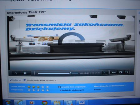 Internetowy Teatr TVP dla szkół to nowatorska telewizyjna inicjatywa wykorzystująca nowoczesną technologię jako sposób dotarcia sztuki wysokich lotów do masowej młodej widowni głównie z małych miejscowości, które nie zawsze mają możliwość przyjazdu do teatru w dużym mieście. Spektakle grane są na żywo i w tym samym czasie oglądane przez kilka tysięcy uczniów w całej Polsce, oczywiście za pośrednictwem Internetu. Proponowany repertuar obejmuje nie tylko kanon lektur szkolnych, ale też adaptacje teatralne arcydzieł polskiej i światowej literatury oraz sztuki współczesne kierowane specjalnie do młodych widzów. W tym niecodziennym wydarzeniu uczestniczyli również uczniowie ze Szkoły Podstawowej w Olszance. Dzięki wykorzystaniu nowoczesnych technologii uczniowie obejrzeli „na żywo” spektakl pt. „Jaś i Małgosia”, przekazywany bezpośrednio z Opery i Filharmonii Podlaskiej-Europejskiego Centrum Sztuki w Białymstoku. Dokładnie 12 września 2013r. o godzinie 10.00, dzieci mogły poczuć się jak w prawdziwym teatrze, który wprowadził najmłodszą widownię w żywy świat instrumentów i różnorodnych dźwięków. Było to nietypowe przedstawienie - interaktywna bajka wg tekstu J. Brzechwy w reżyserii R. Skolmowskiego o charakterze muzyczno - teatralnym. Znana dotychczas baśniowa historia rodzeństwa wprowadziła na żywo naszych uczniów, za pomocą nowoczesnych rozwiązań technologicznych, w świat instrumentów i różnorodnych dźwięków. Nowatorskim podejściem była zamiana przez reżysera tytułowych bohaterów w instrumenty muzyczne: Jasia w trąbę, Małgosię w flet. Małgorzata Szostakowska stworzyła niezwykle malarską, dopracowaną w szczegółach scenografię, dzięki której dzieci miały możliwość znalezienia się w prawdziwie bajkowym świecie. Drzewa w kształcie trąb, domek czarownicy to piernikowy kontrabas. Pod stopami Małgosi rozkwitały leśne kwiaty, po trawie przemykały małe zwierzątka: lis, sowa, królik. W łosich łopatach – za zwierzęta te przebrana zostanie orkiestra – uwiją gniazda ptaszki. Całość emanowała kolorami, ciepłem, pogodą. Uczniowie z Olszanki z prawdziwym zainteresowaniem śledzili losy dwójki dzieci. Podziwiali grę aktorów i przepiękne kostiumy. Doskonały odbiór i atmosferę na widowni zapewniła m.in. oprawa muzyczna, która w pełni pochłonęła uwagę młodych widzów, wciągając ich w fascynujący świat przygód Jasia i Małgosi. Spektakl dostarczył wielu niezapomnianych wrażeń. Z niecierpliwością czekamy na kolejne przedstawianie, które odbędzie się 24 września.