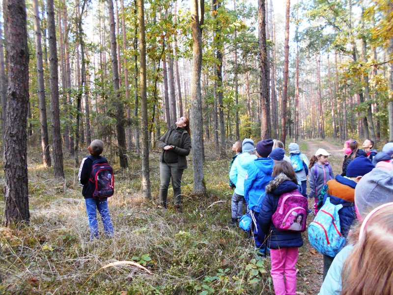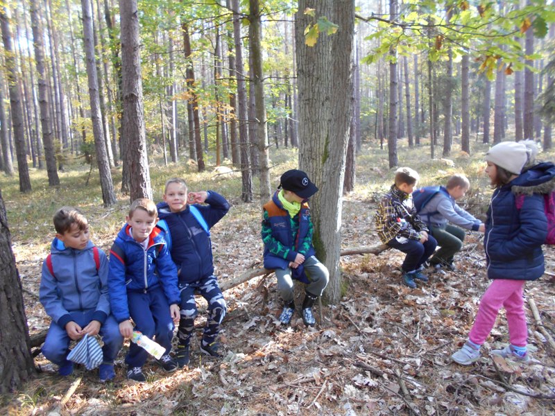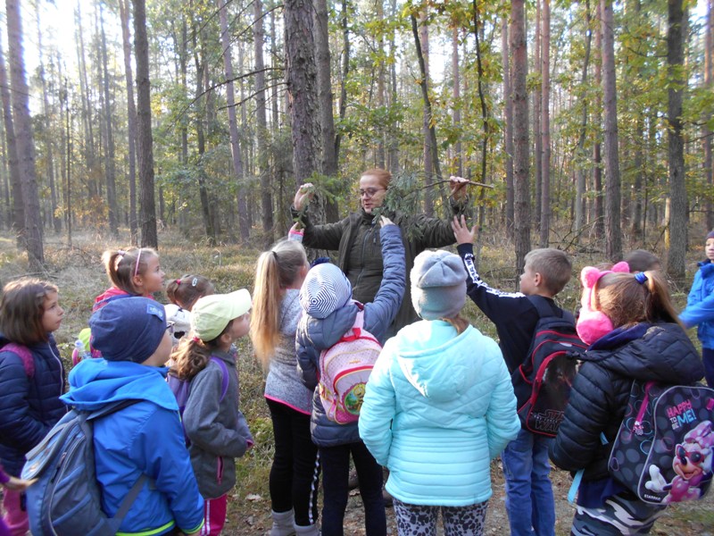 Dnia 10.10.2018 r. klasa 2 i 3 PSP byÅ‚y na wycieczce w lesie. OdwiedziÅ‚y LeÅ›nictwo Barucice w NadleÅ›nictwie Brzeg. Na miejscu na uczniów czekaÅ‚a p. pracownik NadleÅ›nictwa Brzeg. Pani leÅ›nik oprowadziÅ‚a dzieci po lesie pokazujÄ…c im różnorodność szaty roÅ›linnej lasu: drzewa liÅ›ciaste, iglaste, krzewy, mchy, grzyby, porosty, runo leÅ›ne. Uczniowie poznawali warstwy lasu, obserwowali zmiany zachodzÄ…ce w lesie jesieniÄ…, nasÅ‚uchiwali odgÅ‚osów zwierzÄ…t i ptaków, zbierali skarby, które pani JesieÅ„ zostawiÅ‚a w lesie (kolorowe liÅ›cie, szyszki, żołędzie, kawaÅ‚ki kory i grzyby jadalne - niestety udaÅ‚o im siÄ™ znaleźć tylko jednego podgrzybka). Po spacerze dzieci odwiedziÅ‚y także gospodarstwo pana leÅ›niczego, gdzie mogÅ‚y podziwiać koniki polskie, króliki, kaczki, kury, gÄ™si, perliczki i mieszkajÄ…cÄ… w zagrodzie małą sarenkÄ™ EwciÄ™. OstatniÄ… atrakcjÄ… wycieczki byÅ‚o pieczenie kieÅ‚basy w ognisku przygotowanym przez pracowników leÅ›nictwa. Wycieczka do lasu byÅ‚a wspaniałą okazjÄ… do obserwacji naturalnego Å›wiata roÅ›lin, zwierzÄ…t, oraz wspaniaÅ‚ym przeżyciem dla uczniów. Dzieci nauczyÅ‚y siÄ™ prawidÅ‚owego zachowania w lesie, by nie ucierpiaÅ‚a leÅ›na przyroda. ZrozumiaÅ‚y znaczenie lasu dla ludzi i zwierzÄ…t. DoÅ›wiadczyÅ‚y, że las to źródÅ‚o Å›wieżego powietrza. SpÄ™dziÅ‚y miÅ‚o czas na w otoczeniu piÄ™knej, malowniczej, jesiennej przyrody leÅ›nej, po czym peÅ‚ni niezapomnianych wrażeń wrócili do szkoÅ‚y.Â