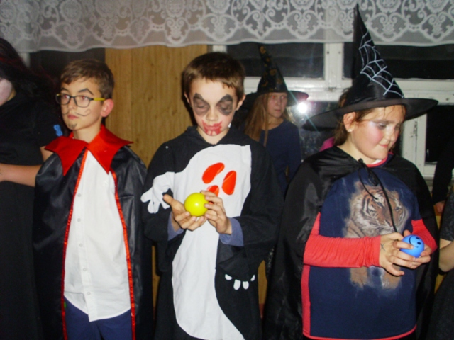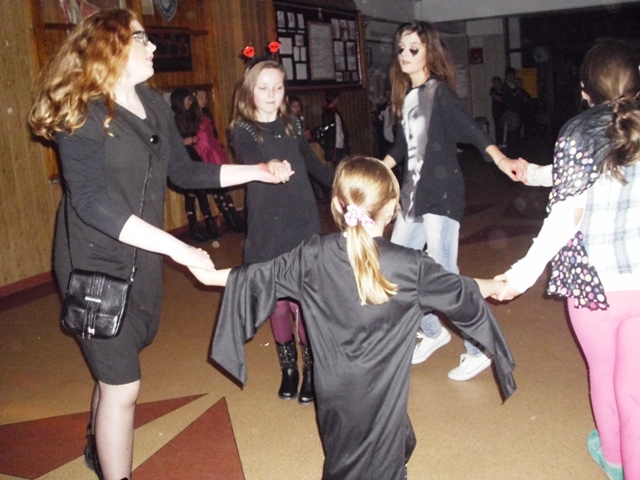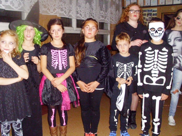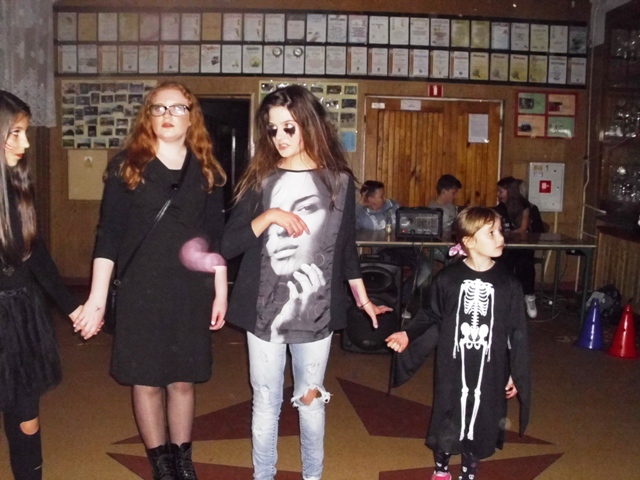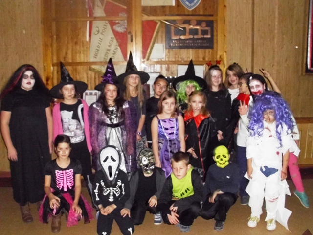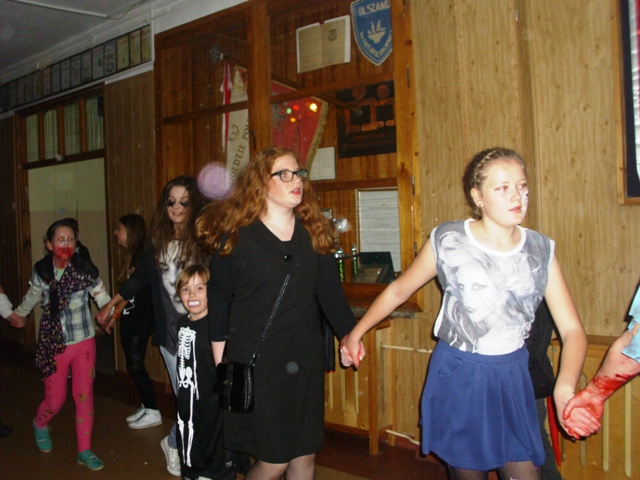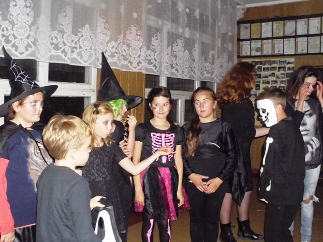 Na języku angielskim w naszej szkole poznajemy nie tylko słownictwo, gramatykę i literaturę Anglii, bierzemy również udział w lekcjach kulturowych m.in. o tematyce Halloween. Uczniowie poznają na nich historię, pochodzenie tego święta, które jest bardzo popularne w krajach anglosaskich. Aby głębiej zrozumieć ten zwyczaj w  ostatnim tygodniu października zorganizowaliśmy wieczór Halloween . Z tej okazji spotkało się w naszej szkole wiele mrocznych postaci. Pomimo, iż większość z nich była bardzo upiorna, to tak naprawdę nikt się nie bał. Podziwialiśmy swoje kostiumy, pomysłowość i oryginalność oraz sztukę makijażu, której nie powstydziliby się najlepsi charakteryzatorzy filmowi. Najważniejsze było to, że wokół panowała ekscytacja, dreszczyk emocji oraz było wiele śmiechu i radości. Nad oprawą muzyczną czuwali: Radek Pochopień i Piotr Romanowski. Dobrej zabawie towarzyszyły konkursy m.in. deszcz cukierków,  najszybszy lot na miotle, na najciekawsze przebranie. Na zakończenie odbyło się uroczyste wręczenie nagród przez opiekuna Samorządu Uczniowskiego zwycięzcom konkursów oraz podziękowań dla uczniów, którzy chętnie i z wielkim zaangażowaniem przystępowali do rywalizacji. Zwycięzcy wszystkich konkurencji otrzymali nagrody, a każdy uczestnik zabawy został na zakończenie poczęstowany słodyczami.