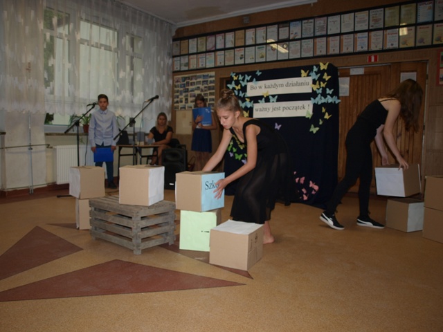 Po części artystycznej głos zabrała dyrektor Zespołu – pani Bożena Lorent, która bardzo serdecznie powitała uczniów, nauczycieli oraz rodziców i z okazji nowego roku szkolnego życzyła wszystkim dużo zapału do pracy, wytrwałości, optymizmu i uśmiechu na co dzień. Szczególnie gorące słowa skierowała do najmłodszych uczniów klas pierwszych szkoły podstawowej. Zaznaczyła, iż pierwsze dni to okres adaptacji, czas poznawania swoich rówieśników, wychowawców, nauczycieli oraz wymagań, jakie stawia szkoła. W swoim przemówieniu dyrektor szkoły nawiązała również do 80. rocznicy wybuchu II wojny światowej- wydarzenia, które na zawsze zmieniło losy Polski i Świata. Następnie p. B. Lorent zapoznała uczniów i ich rodziców z przydziałem wychowawstw, przedstawiła zebranym grono pedagogiczne.