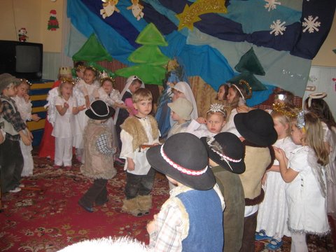 Święta Bożego Narodzenia to najbardziej uroczyste święta w naszej tradycji, to niewątpliwie najpiękniejszy i najbardziej rodzinny okres w całym roku. Wszyscy, zarówno dzieci jak i dorośli z niecierpliwością oczekują nadejścia tych wzruszających i ciepłych chwil. W przedszkolu okres poprzedzający ten magiczny czas był niezwykle pracowity, ponieważ zwyczajem naszego przedszkola jest przygotowywanie przez dzieci jasełek, które przybliżają nam wydarzenia Betlejemskiej Nocy, wprowadzając w świąteczną atmosferę. 18 grudnia 2008 roku w Publicznym Przedszkolu w Olszance w sali wypełnionej po brzegi przez rodziców, dziadków oraz zaproszonych gości dzieci zaprezentowały swoje Przedstawienie Jasełkowe. Wszystkich serdecznie przywitała Pani Wicedyrektor Violetta Świder, po czym oddała głos naszym małym aktorom, którzy w przepięknych strojach wspaniale odegrali swoje role. Zaprezentowane teksty przeplatane były pięknymi i wzruszającymi kolędami wykonanymi przez dzieci z ogromnym wdziękiem, uczuciem i ekspresją. Dzieci bardzo przeżywały swój występ, a oglądający goście nie kryli wzruszenia. Po tak ujmującym przedstawieniu publiczność nagrodziła naszych małych aktorów gromkimi brawami, podziękowaniami oraz słodkimi upominkami.