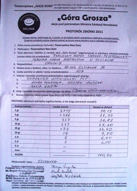 w Olszance zbierali przez dwa tygodnie każdy grosik. Zbiórka