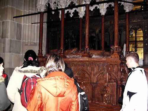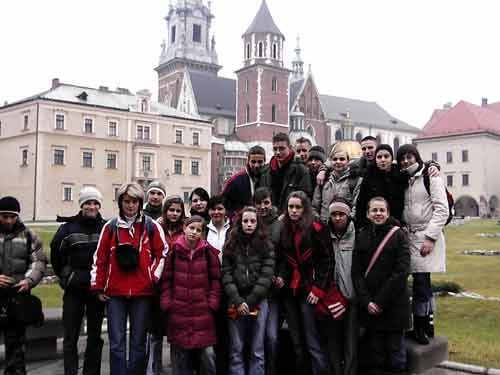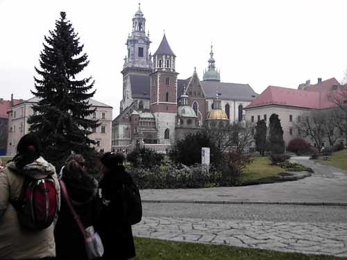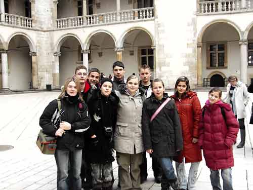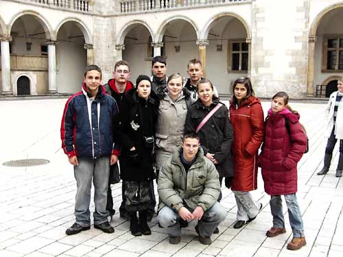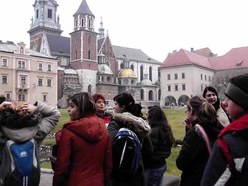 Po czterogodzinnej jeździe w końcu dotarliśmy do Krakowa. Już z daleka rozpoznaliśmy Wawel. Tuż pod nim spotkaliśmy się z panią przewodnik, bardzo sympatyczną osobą, która oczarowała wszystkich swoją ogromną wiedzą na temat Krakowa, okolic i historii królów polskich. Interesująco opowiadała nam historię powstania siedziby królewskiej, ciekawie „przedstawiła” wszystkich mieszkańców Wawelu. Wszyscy słuchali z zainteresowaniem jej opowieści o Świętej Królowej Jadwidze, Zygmuncie Starym, Władysławie Łokietku i wielu innych władcach. Widzieliśmy również ich grobowce. Nie przeszliśmy obojętnie obok miejsca spoczynku zwłok Juliusza Słowackiego, Adama Mickiewicza i marszałka Józefa Piłsudskiego. To naprawdę duże przeżycie być w miejscu, gdzie znajdują się szczątki tylu wybitnych postaci. Mieliśmy okazję podziwiać dzwony znajdujące się na Wawelu. Chyba tak naprawdę nikt z nas do tej pory nie zdawał sobie sprawy z tego jak wielki i ciekawy jest dzwon Zygmunta. Emanuje potęgą, siłą i dostojeństwem. Oczywiście każdy z nas dotknął na szczęście serce dzwonu i pomyślał życzenie. Mamy ogromną nadzieję, że wszystkie nasze życzenia się spełnią. Zapewniała o tym zresztą pani przewodnik, a ona wie najlepiej. Zwiedzaliśmy również Kościół Mariacki, Sukiennice (ale tylko z daleka, gdyż niestety były zamknięte), Barbakan i inne historyczne obiekty. Jednak największe wrażenie zrobił na nas Wawel.